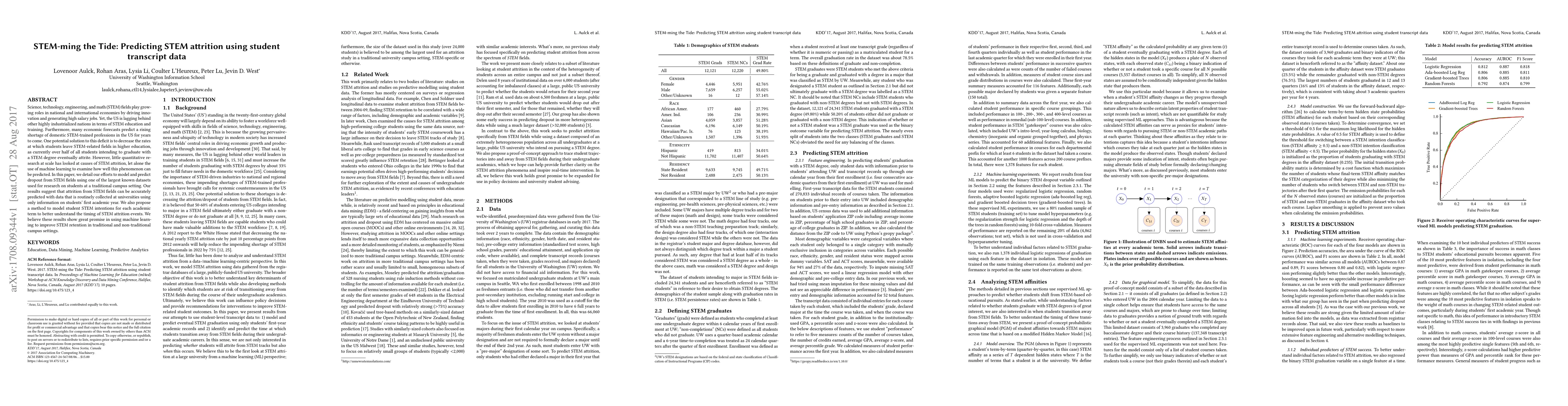 Science, technology, engineering, and math (STEM) fields play growing roles in national and international economies by driving innovation and generating high salary jobs. Yet, the US is lagging behind other highly industrialized nations in terms of STEM education and training. Furthermore, many economic forecasts predict a rising shortage of domestic STEM-trained professions in the US for years to come. One potential solution to this deficit is to decrease the rates at which students leave STEM-related fields in higher education, as currently over half of all students intending to graduate with a STEM degree eventually attrite. However, little quantitative research at scale has looked at causes of STEM attrition, let alone the use of machine learning to examine how well this phenomenon can be predicted. In this paper, we detail our efforts to model and predict dropout from STEM fields using one of the largest known datasets used for research on students at a traditional campus setting. Our results suggest that attrition from STEM fields can be accurately predicted with data that is routinely collected at universities using only information on students' first academic year. We also propose a method to model student STEM intentions for each academic term to better understand the timing of STEM attrition events. We believe these results show great promise in using machine learning to improve STEM retention in traditional and non-traditional campus settings.
