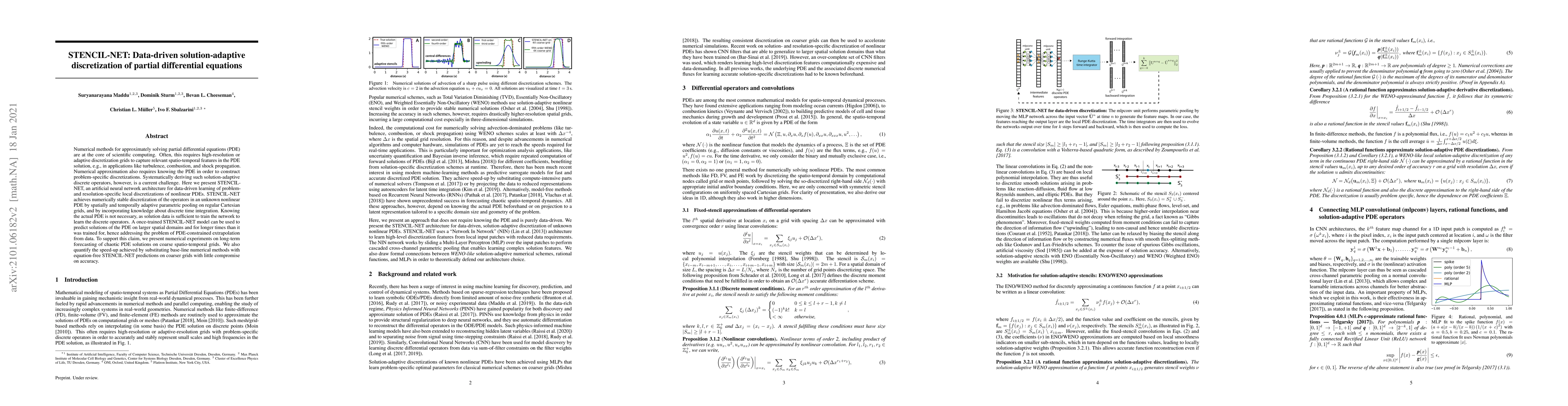 STENCIL-NET is an artificial neural network that learns adaptive discretizations for solving nonlinear partial differential equations (PDEs) using only solution data. It achieves stable, adaptive discretizations without requiring knowledge of the PDE, enabling extrapolation to larger domains and longer times.