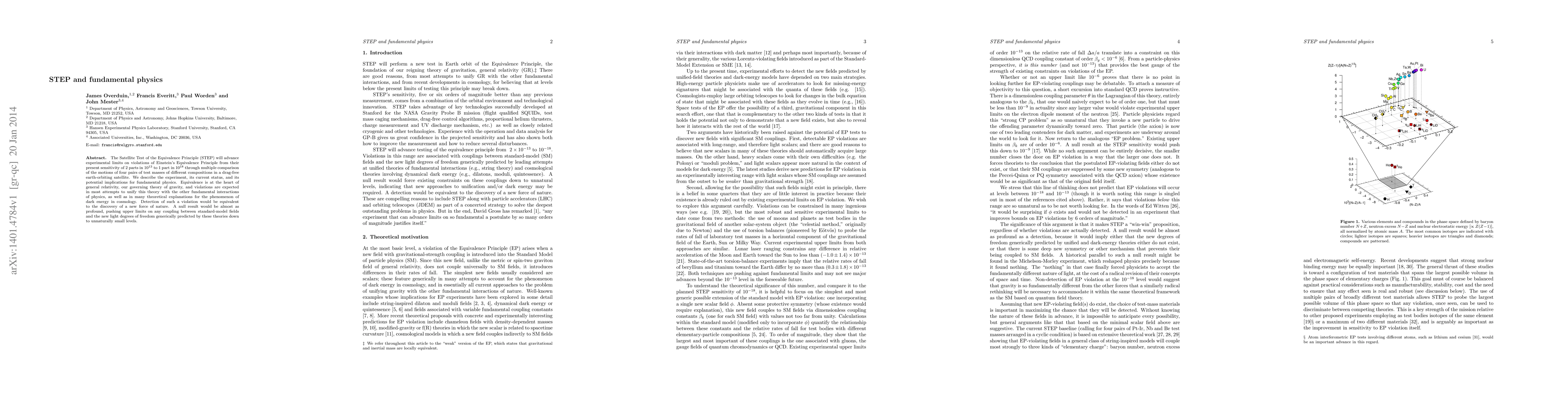 The Satellite Test of the Equivalence Principle (STEP) will advance experimental limits on violations of Einstein's Equivalence Principle from their present sensitivity of 2 parts in $10^{13}$ to 1 part in $10^{18}$ through multiple comparison of the motions of four pairs of test masses of different compositions in a drag-free earth-orbiting satellite. We describe the experiment, its current status, and its potential implications for fundamental physics. Equivalence is at the heart of general relativity, our governing theory of gravity, and violations are expected in most attempts to unify this theory with the other fundamental interactions of physics, as well as in many theoretical explanations for the phenomenon of dark energy in cosmology. Detection of such a violation would be equivalent to the discovery of a new force of nature. A null result would be almost as profound, pushing upper limits on any coupling between standard-model fields and the new light degrees of freedom generically predicted by these theories down to unnaturally small levels.