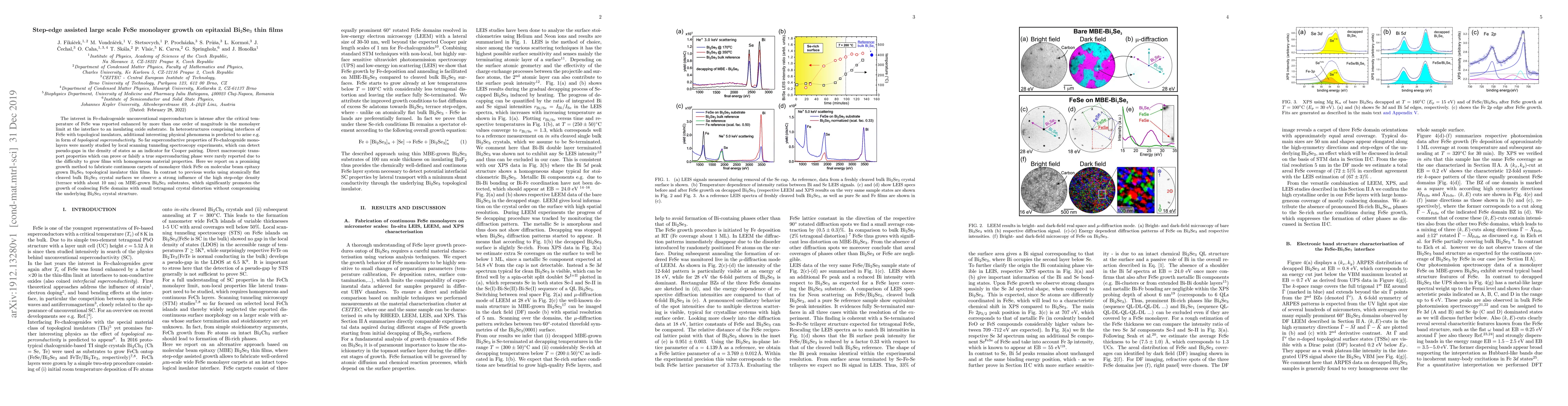 The interest in Fe-chalcogenide unconventional superconductors is intense after the critical temperature of FeSe was reported enhanced by more than one order of magnitude in the monolayer limit at the interface to an insulating oxide substrate. In heterostructures comprising interfaces of FeSe with topological insulators, additional interesting physical phenomena is predicted to arise e.g. in form of {\it topological superconductivity}. So far superconductive properties of Fe-chalcogenide monolayers were mostly studied by local scanning tunneling spectroscopy experiments, which can detect pseudo-gaps in the density of states as an indicator for Cooper pairing. Direct macroscopic transport properties which can prove or falsify a superconducting phase were rarely reported due to the difficulty to grow films with homogeneous material properties. Here we report on a promising growth method to fabricate continuous carpets of monolayer thick FeSe on molecular beam epitaxy grown Bi$_2$Se$_3$ topological insulator thin films. In contrast to previous works using atomically flat cleaved bulk Bi$_2$Se$_3$ crystal surfaces we observe a strong influence of the high step-edge density (terrace width about 10~nm) on MBE-grown Bi$_2$Se$_3$ substrates, which significantly promotes the growth of coalescing FeSe domains with small tetragonal crystal distortion without compromising the underlying Bi$_2$Se$_3$ crystal structure.