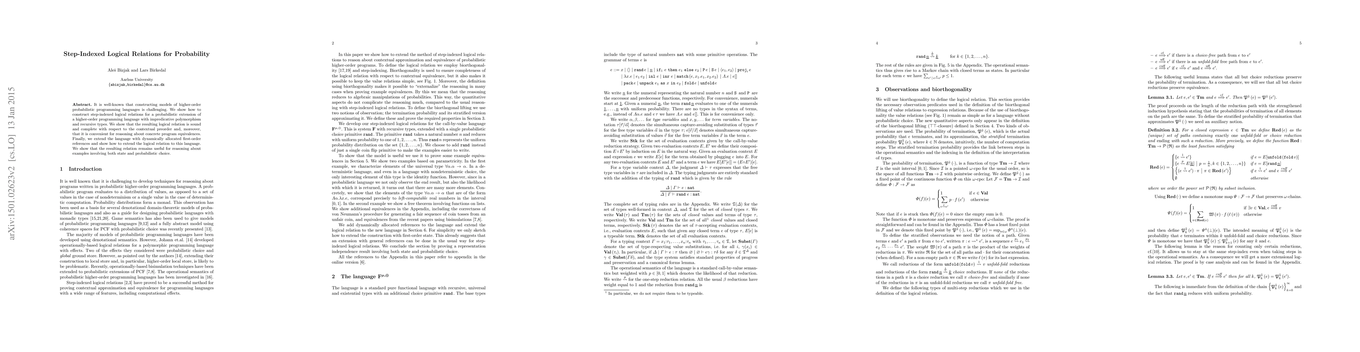 This paper constructs step-indexed logical relations for a probabilistic extension of a higher-order programming language, demonstrating soundness and completeness. It also extends the language to include dynamically allocated references, maintaining the usefulness of the logical relation for reasoning about program equivalences involving state and probabilistic choice.