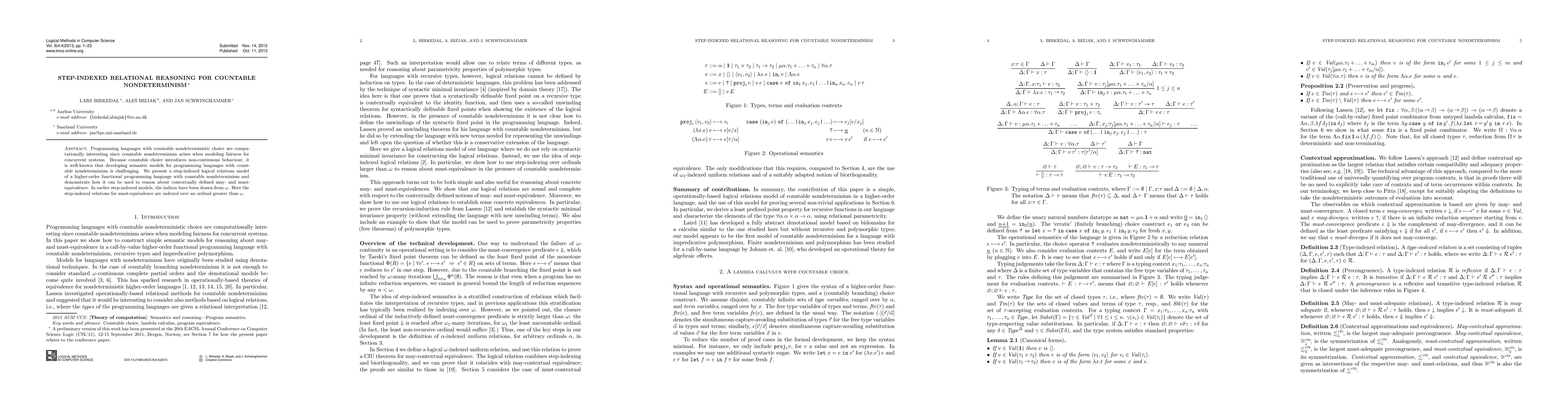 This paper introduces a step-indexed logical relations model for a higher-order functional programming language with countable nondeterminism, tackling the challenge of non-continuous behavior. The model extends previous step-indexed models by using indices from an ordinal greater than ω, enabling reasoning about contextual may- and must-equivalence in concurrent systems.