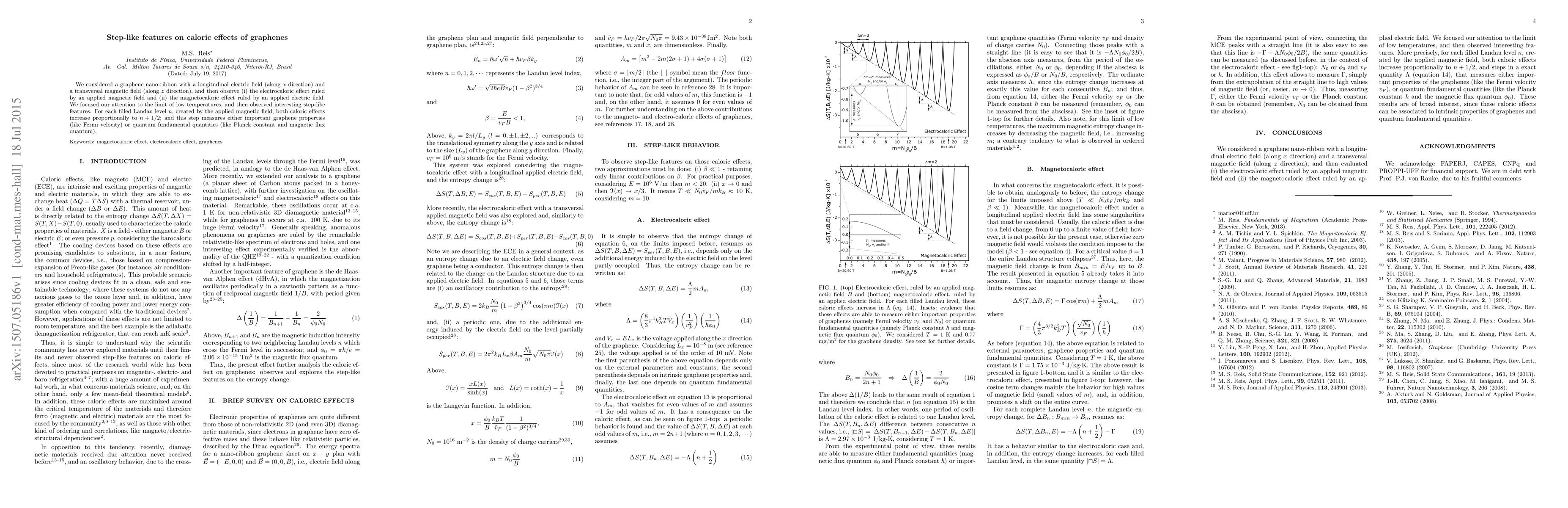 We considered a graphene nano-ribbon with a longitudinal electric field (along $x$ direction) and a transversal magnetic field (along $z$ direction), and then observe (i) the electrocaloric effect ruled by an applied magnetic field and (ii) the magnetocaloric effect ruled by an applied electric field. We focused our attention to the limit of low temperatures, and then observed interesting step-like features. For each filled Landau level $n$, created by the applied magnetic field, both caloric effects increase proportionally to $n+1/2$; and this step measures either important graphene properties (like Fermi velocity) or quantum fundamental quantities (like Planck constant and magnetic flux quantum).