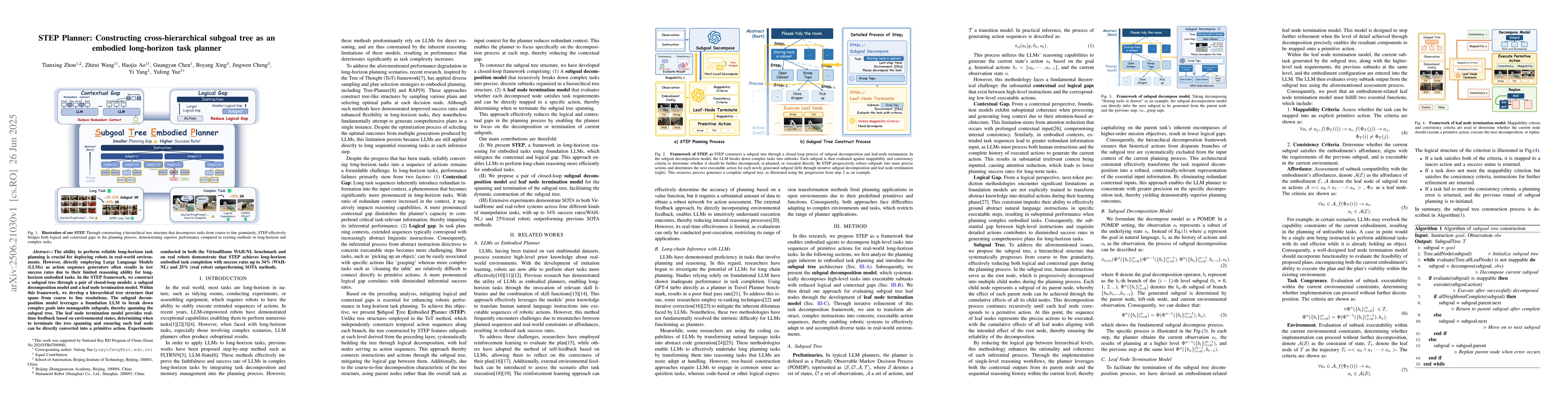 The ability to perform reliable long-horizon task planning is crucial for deploying robots in real-world environments. However, directly employing Large Language Models (LLMs) as action sequence generators often results in low success rates due to their limited reasoning ability for long-horizon embodied tasks. In the STEP framework, we construct a subgoal tree through a pair of closed-loop models: a subgoal decomposition model and a leaf node termination model. Within this framework, we develop a hierarchical tree structure that spans from coarse to fine resolutions. The subgoal decomposition model leverages a foundation LLM to break down complex goals into manageable subgoals, thereby spanning the subgoal tree. The leaf node termination model provides real-time feedback based on environmental states, determining when to terminate the tree spanning and ensuring each leaf node can be directly converted into a primitive action. Experiments conducted in both the VirtualHome WAH-NL benchmark and on real robots demonstrate that STEP achieves long-horizon embodied task completion with success rates up to 34% (WAH-NL) and 25% (real robot) outperforming SOTA methods.