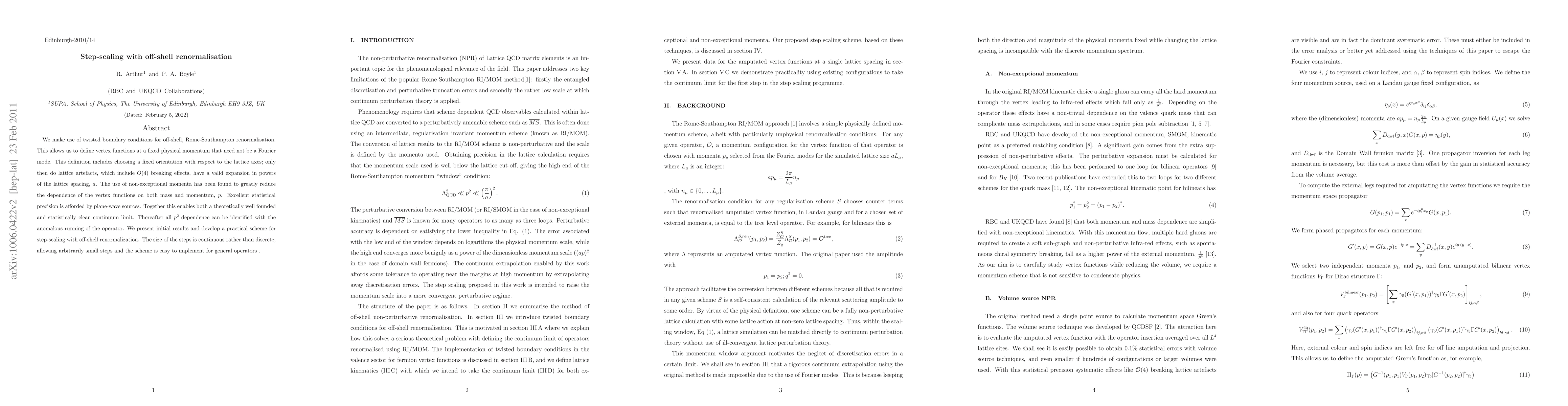 This paper proposes a method for off-shell renormalisation using twisted boundary conditions, enabling precise vertex function definition at non-exceptional momenta. This approach reduces lattice artefacts and allows for a clear continuum limit, facilitating the step-scaling of the RI/SMOM scheme.