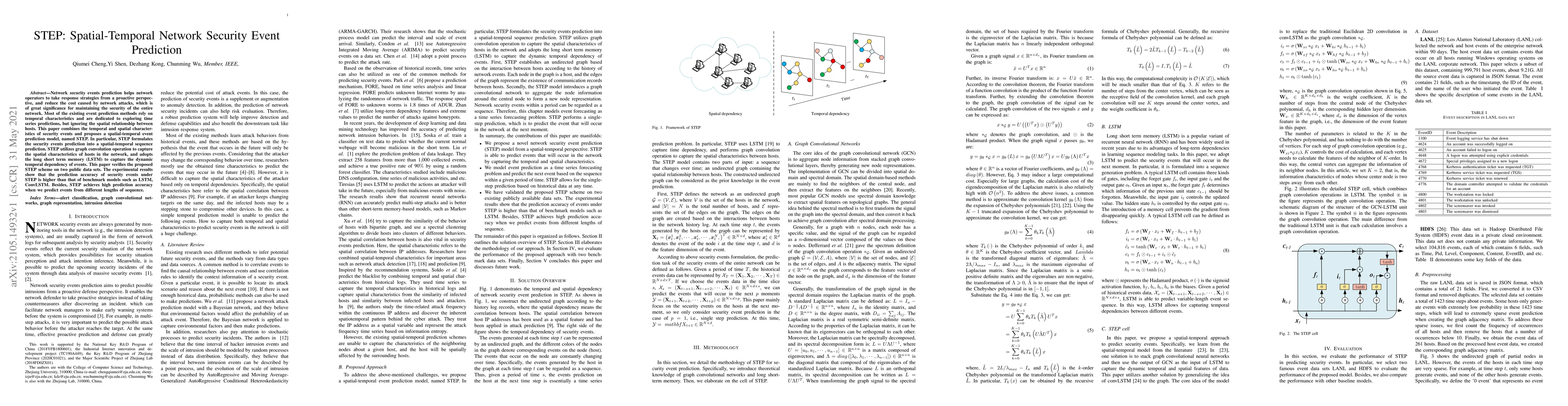 This research is significant as it addresses the limitation of existing methods that only consider temporal characteristics, ignoring the spatial relationships between hosts. By incorporating both spatial and temporal features, STEP provides a more comprehensive approach to network security event prediction, which is crucial for proactive network security management.