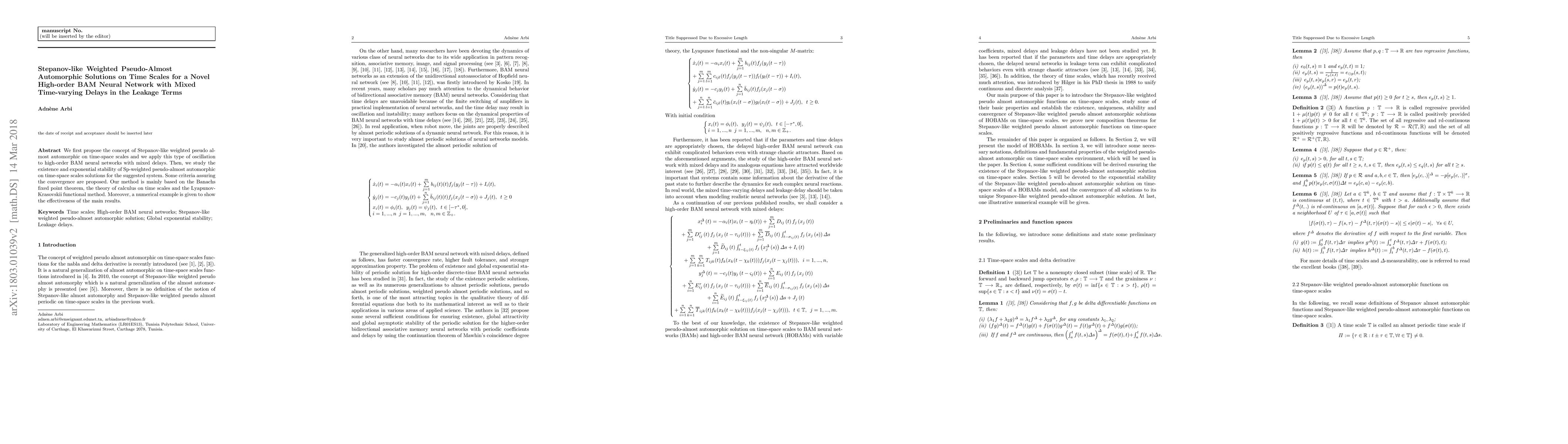 This paper introduces Stepanov-like weighted pseudo-almost automorphic functions on time scales and applies them to high-order BAM neural networks with mixed time-varying delays. It investigates the existence and exponential stability of these solutions, proposing criteria for convergence and employing the Banach fixed point theorem, time scales calculus, and Lyapunov-Krasovskii functional methods.
