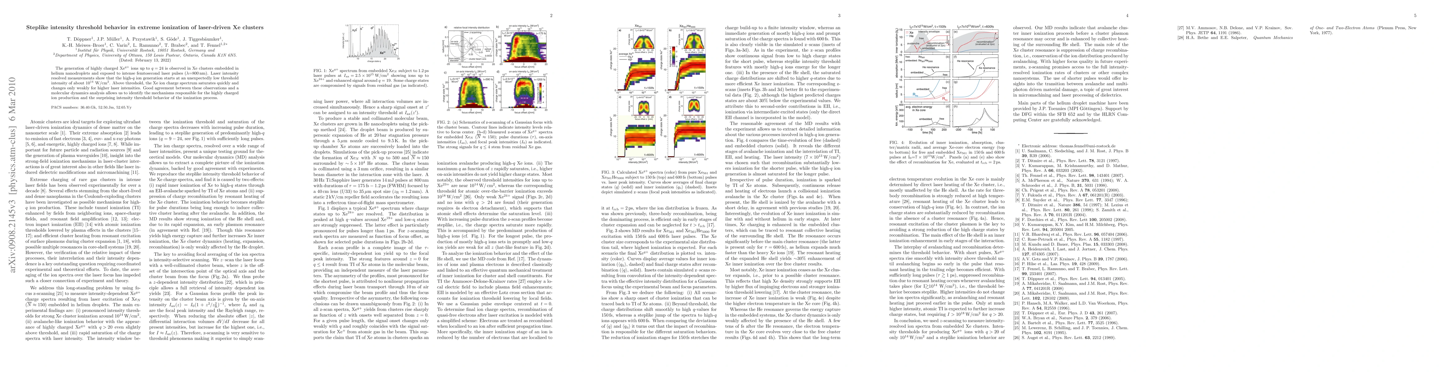 This paper investigates the generation of highly charged Xe ions in laser-driven Xe clusters, revealing a steplike intensity threshold behavior starting at 10$^{14}$ W/cm$^{2}$. The high-$q$ ion production saturates quickly, with mechanisms identified through molecular dynamics analysis.