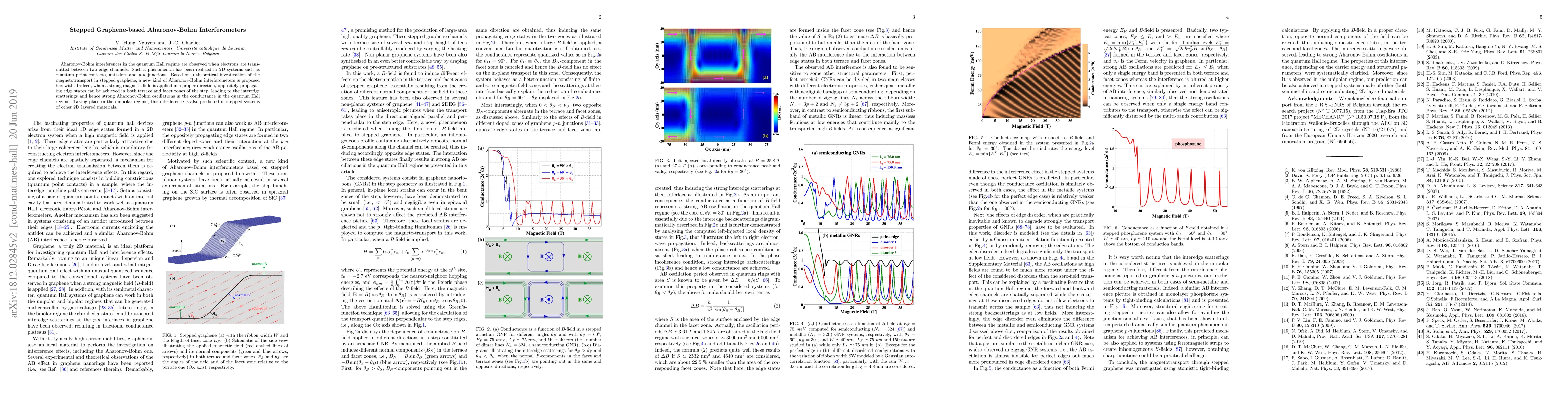 This paper proposes a new type of Aharonov-Bohm interferometer based on stepped graphene where strong quantum interference effects are observed in the quantum Hall regime due to interedge scatterings from oppositely propagating edge states. This phenomenon is predicted to occur in other 2D layered materials under similar conditions.