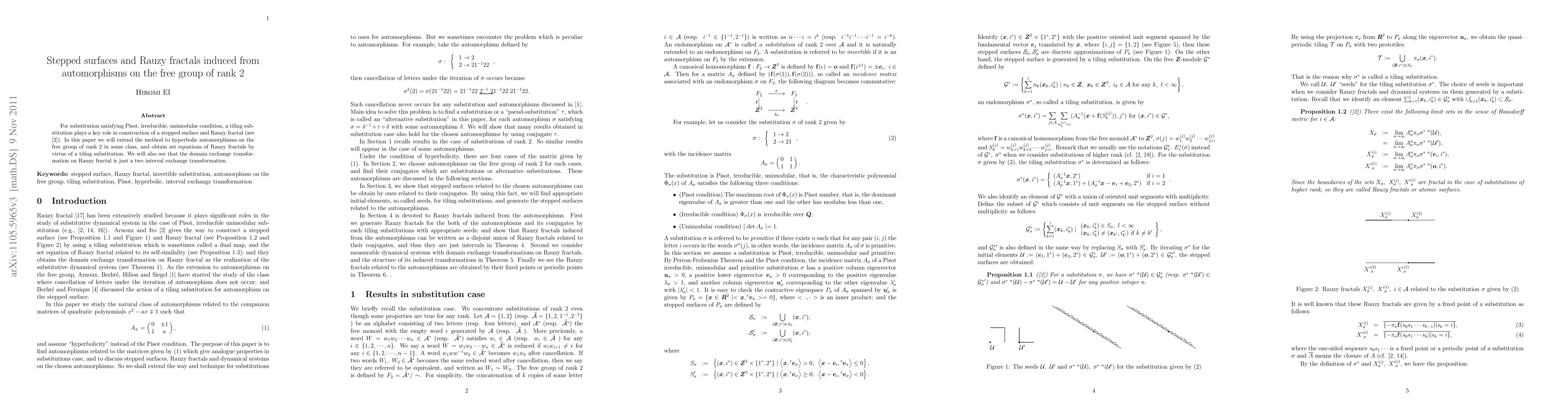 This paper extends the construction of stepped surfaces and Rauzy fractals to hyperbolic automorphisms on the free group of rank 2, using tiling substitutions. It derives set equations for Rauzy fractals and shows that the domain exchange transformation on these fractals is equivalent to a two-interval exchange transformation.