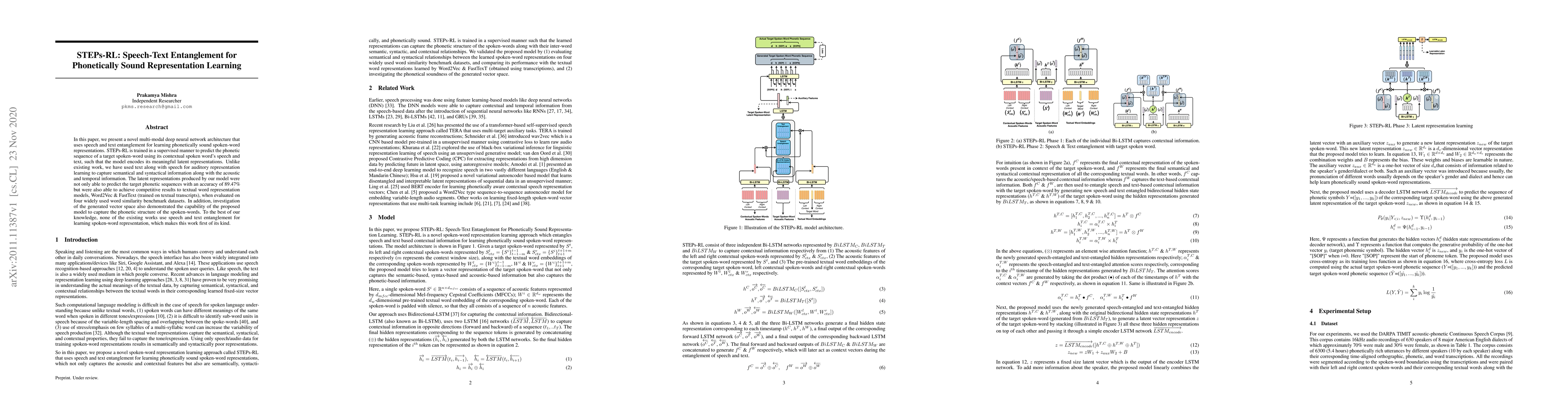 A new deep neural network architecture, STEPs-RL, uses speech and text entanglement to learn phonetically sound spoken-word representations with 89.47% accuracy. It outperforms traditional models in word similarity benchmarks.