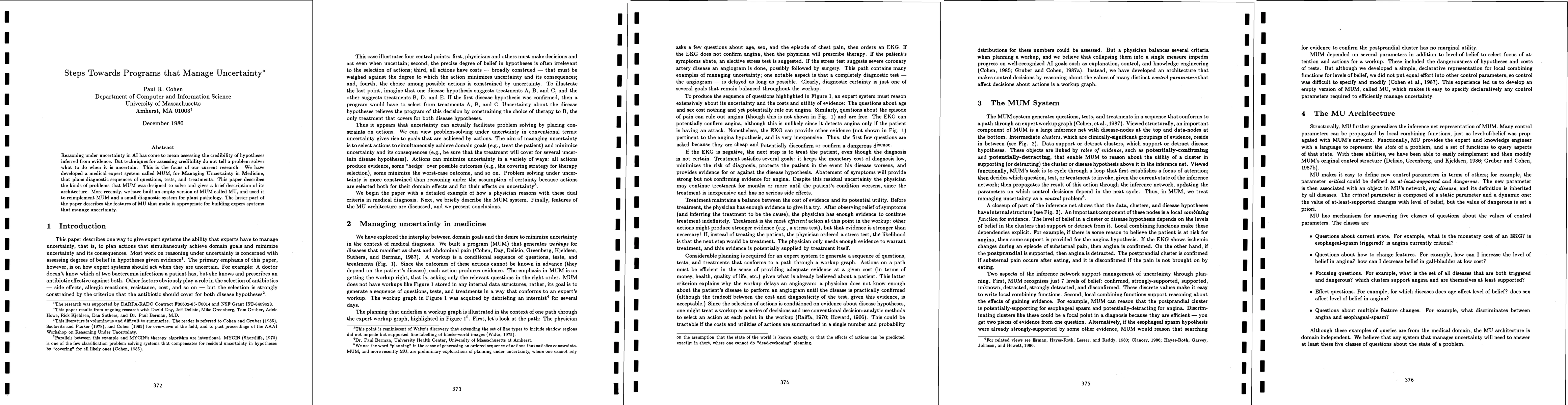 Reasoning under uncertainty in Al hats come to mean assessing the credibility of hypotheses inferred from evidence. But techniques for assessing credibility do not tell a problem solver what to do when it is uncertain. This is the focus of our current research. We have developed a medical expert system called MUM, for Managing Uncertainty in Medicine, that plans diagnostic sequences of questions, tests, and treatments. This paper describes the kinds of problems that MUM was designed to solve and gives a brief description of its architecture. More recently, we have built an empty version of MUM called MU, and used it to reimplement MUM and a small diagnostic system for plant pathology. The latter part of the paper describes the features of MU that make it appropriate for building expert systems that manage uncertainty.