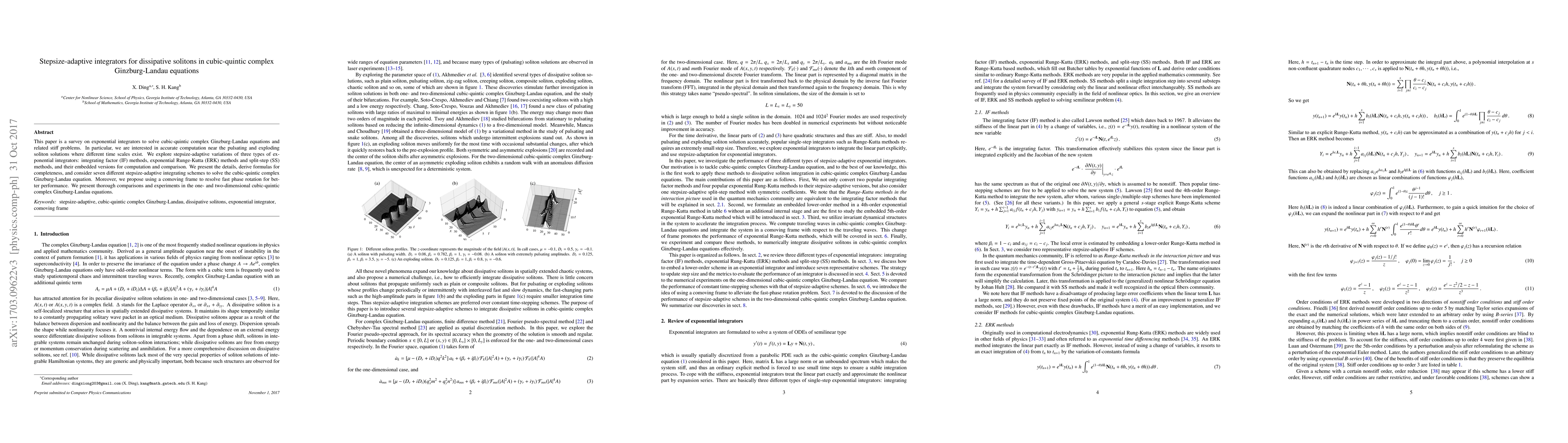 This paper surveys exponential integrators for solving cubic-quintic complex Ginzburg-Landau equations, focusing on adaptive stepsize methods for accurate computations near soliton solutions. It compares integrating factor, exponential Runge-Kutta, and split-step methods, proposing a comoving frame approach for resolving fast phase rotation.