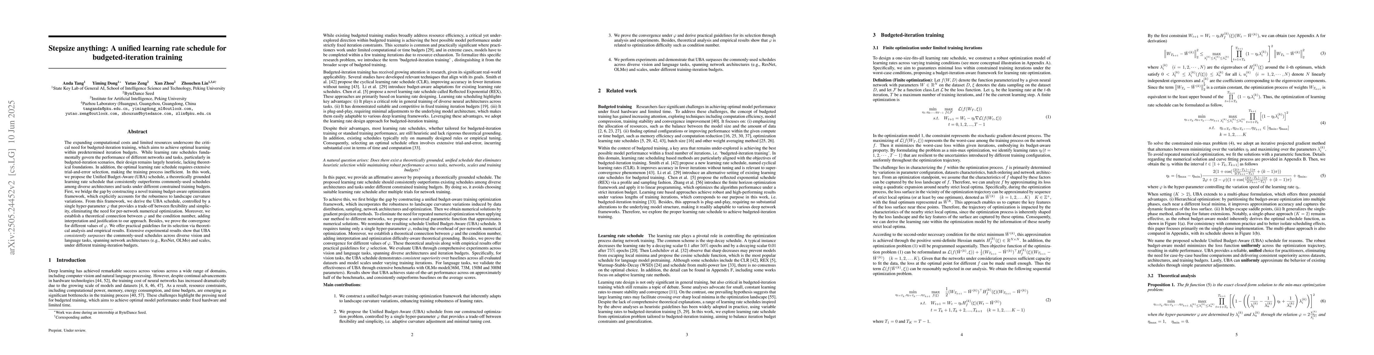 Researchers developed a unified learning rate schedule called Unified Budget-Aware (UBA) that outperforms existing schedules in diverse architectures and tasks under different training budgets, offering a theoretically grounded solution for efficient budgeted-iteration training.