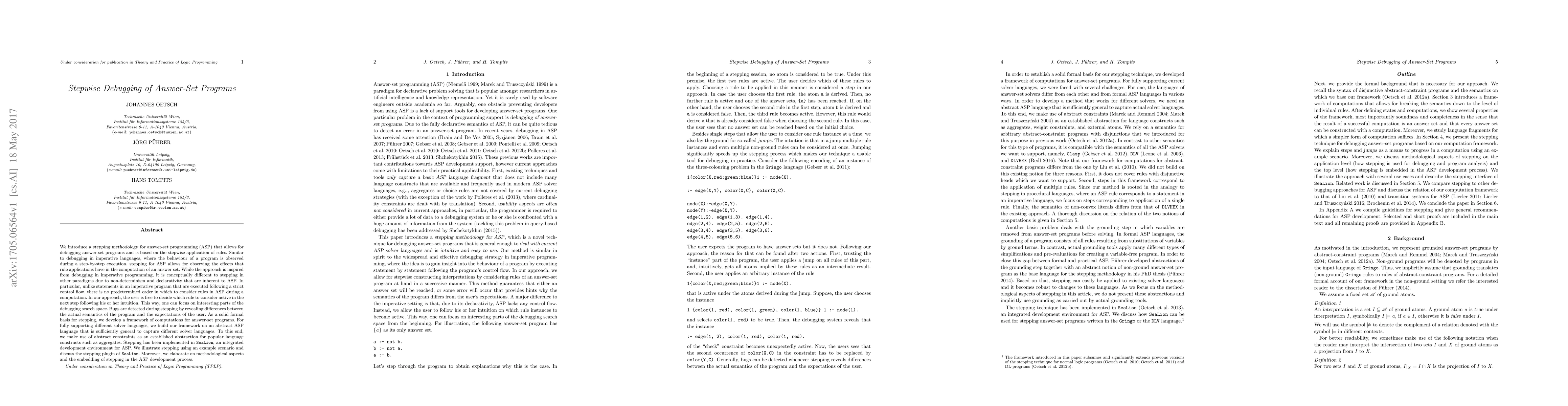 We introduce a stepping methodology for answer-set programming (ASP) that allows for debugging answer-set programs and is based on the stepwise application of rules. Similar to debugging in imperative languages, where the behaviour of a program is observed during a step-by-step execution, stepping for ASP allows for observing the effects that rule applications have in the computation of an answer set. While the approach is inspired from debugging in imperative programming, it is conceptually different to stepping in other paradigms due to non-determinism and declarativity that are inherent to ASP. In particular, unlike statements in an imperative program that are executed following a strict control flow, there is no predetermined order in which to consider rules in ASP during a computation. In our approach, the user is free to decide which rule to consider active in the next step following his or her intuition. This way, one can focus on interesting parts of the debugging search space. Bugs are detected during stepping by revealing differences between the actual semantics of the program and the expectations of the user. As a solid formal basis for stepping, we develop a framework of computations for answer-set programs. For fully supporting different solver languages, we build our framework on an abstract ASP language that is sufficiently general to capture different solver languages. To this end, we make use of abstract constraints as an established abstraction for popular language constructs such as aggregates. Stepping has been implemented in SeaLion, an integrated development environment for ASP. We illustrate stepping using an example scenario and discuss the stepping plugin of SeaLion. Moreover, we elaborate on methodological aspects and the embedding of stepping in the ASP development process.