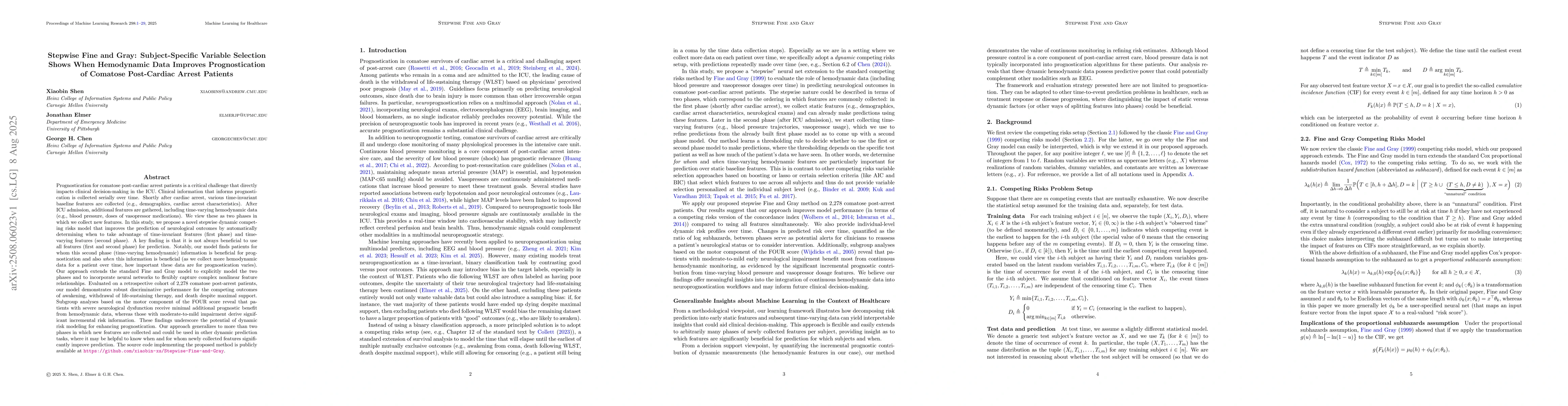 Prognostication for comatose post-cardiac arrest patients is a critical challenge that directly impacts clinical decision-making in the ICU. Clinical information that informs prognostication is collected serially over time. Shortly after cardiac arrest, various time-invariant baseline features are collected (e.g., demographics, cardiac arrest characteristics). After ICU admission, additional features are gathered, including time-varying hemodynamic data (e.g., blood pressure, doses of vasopressor medications). We view these as two phases in which we collect new features. In this study, we propose a novel stepwise dynamic competing risks model that improves the prediction of neurological outcomes by automatically determining when to take advantage of time-invariant features (first phase) and time-varying features (second phase). Notably, our model finds patients for whom this second phase (time-varying hemodynamic) information is beneficial for prognostication and also when this information is beneficial (as we collect more hemodynamic data for a patient over time, how important these data are for prognostication varies). Our approach extends the standard Fine and Gray model to explicitly model the two phases and to incorporate neural networks to flexibly capture complex nonlinear feature relationships. Evaluated on a retrospective cohort of 2,278 comatose post-arrest patients, our model demonstrates robust discriminative performance for the competing outcomes of awakening, withdrawal of life-sustaining therapy, and death despite maximal support. Our approach generalizes to more than two phases in which new features are collected and could be used in other dynamic prediction tasks, where it may be helpful to know when and for whom newly collected features significantly improve prediction.