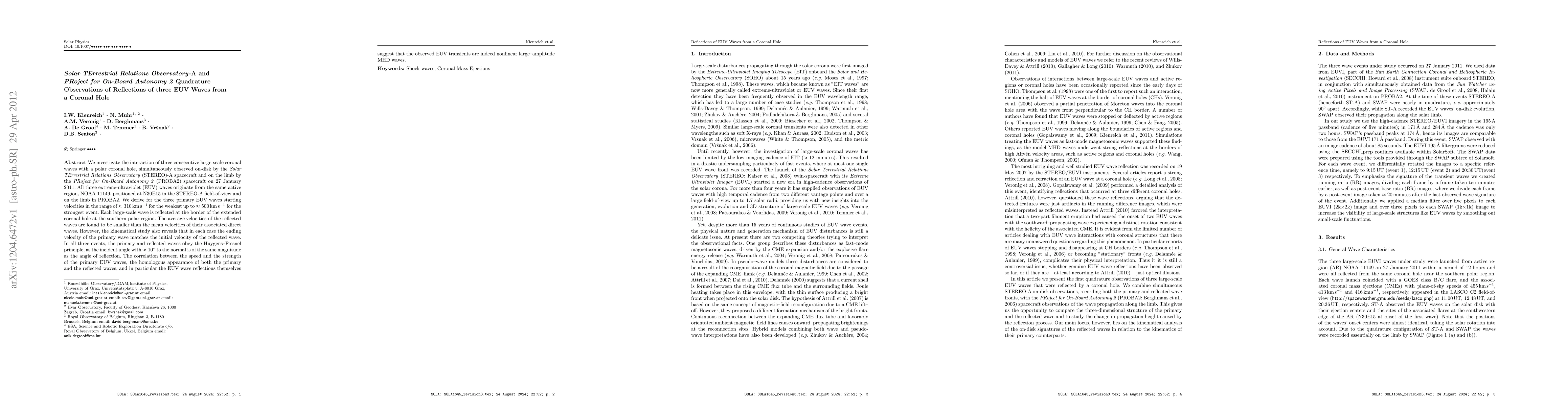 This study examines three large-scale coronal waves interacting with a polar coronal hole, observed by STEREO-A and PROBA2. The waves reflect off the coronal hole's border, with reflected wave velocities lower than their direct counterparts but matching initial velocities. The findings support the waves' nature as nonlinear, large-amplitude magnetohydrodynamic (MHD) phenomena.