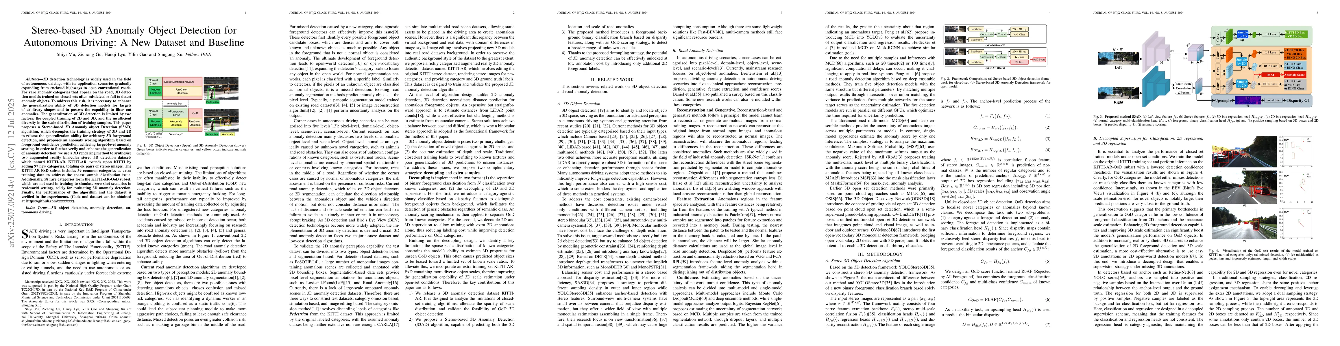 3D detection technology is widely used in the field of autonomous driving, with its application scenarios gradually expanding from enclosed highways to open conventional roads. For rare anomaly categories that appear on the road, 3D detection models trained on closed sets often misdetect or fail to detect anomaly objects. To address this risk, it is necessary to enhance the generalization ability of 3D detection models for targets of arbitrary shapes and to possess the capability to filter out anomalies. The generalization of 3D detection is limited by two factors: the coupled training of 2D and 3D, and the insufficient diversity in the scale distribution of training samples. This paper proposes a Stereo-based 3D Anomaly object Detection (S3AD) algorithm, which decouples the training strategy of 3D and 2D to release the generalization ability for arbitrary 3D foreground detection, and proposes an anomaly scoring algorithm based on foreground confidence prediction, achieving target-level anomaly scoring. In order to further verify and enhance the generalization of anomaly detection, we use a 3D rendering method to synthesize two augmented reality binocular stereo 3D detection datasets which named KITTI-AR. KITTI-AR extends upon KITTI by adding 97 new categories, totaling 6k pairs of stereo images. The KITTI-AR-ExD subset includes 39 common categories as extra training data to address the sparse sample distribution issue. Additionally, 58 rare categories form the KITTI-AR-OoD subset, which are not used in training to simulate zero-shot scenarios in real-world settings, solely for evaluating 3D anomaly detection. Finally, the performance of the algorithm and the dataset is verified in the experiments. (Code and dataset can be obtained at https://github.com/xxxx/xxx).