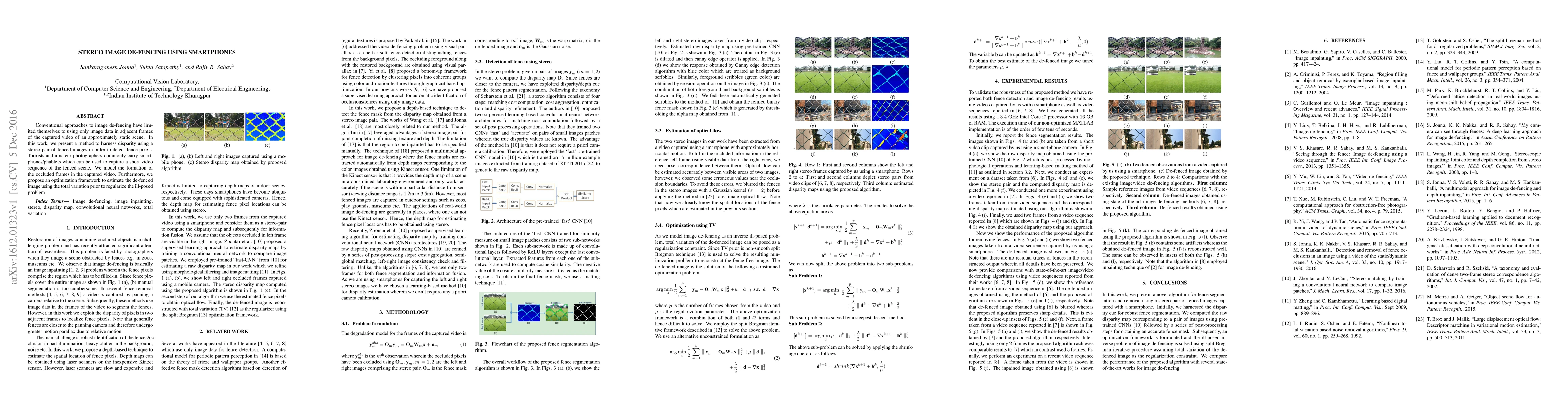 Researchers created a method to de-fence images using smartphone stereo pairs, improving on existing approaches that only used adjacent frame data. They propose an optimization framework to estimate the de-fenced image using total variation priori.