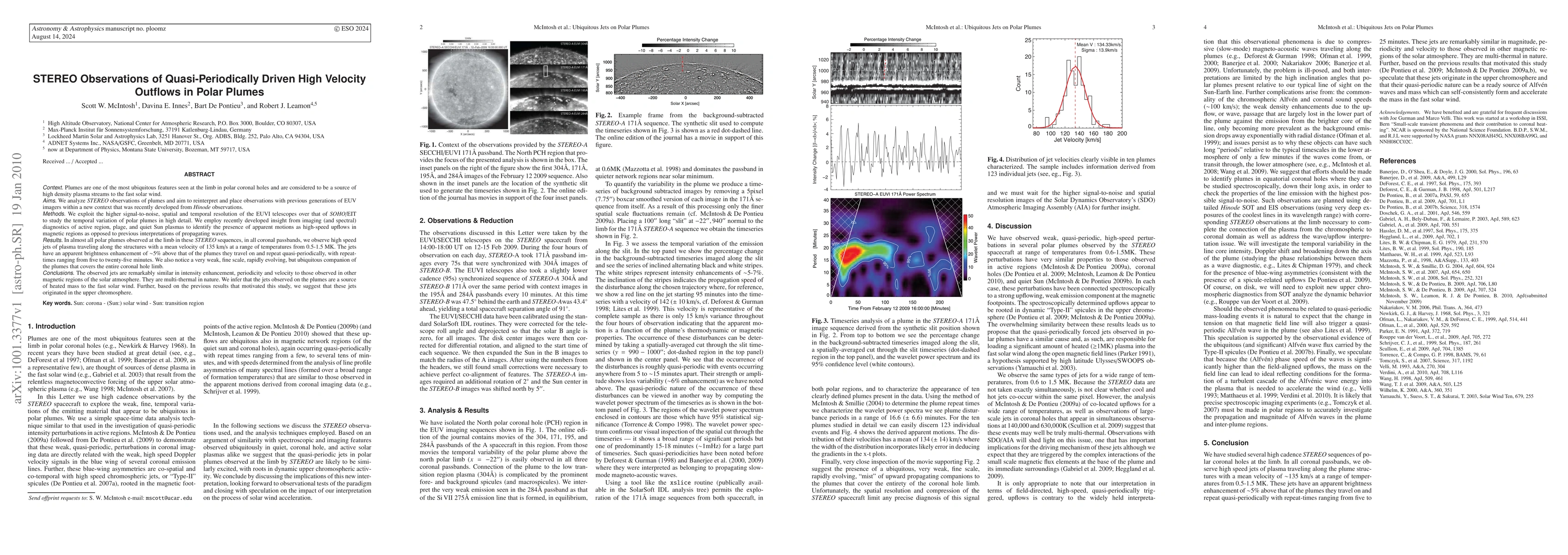 This paper analyzes STEREO observations of polar coronal plumes, identifying high-speed plasma jets traveling along plume structures with velocities averaging 135 km/s and quasi-periodic repetitions, suggesting these jets are a source of heated mass to the fast solar wind, likely originating in the upper chromosphere.