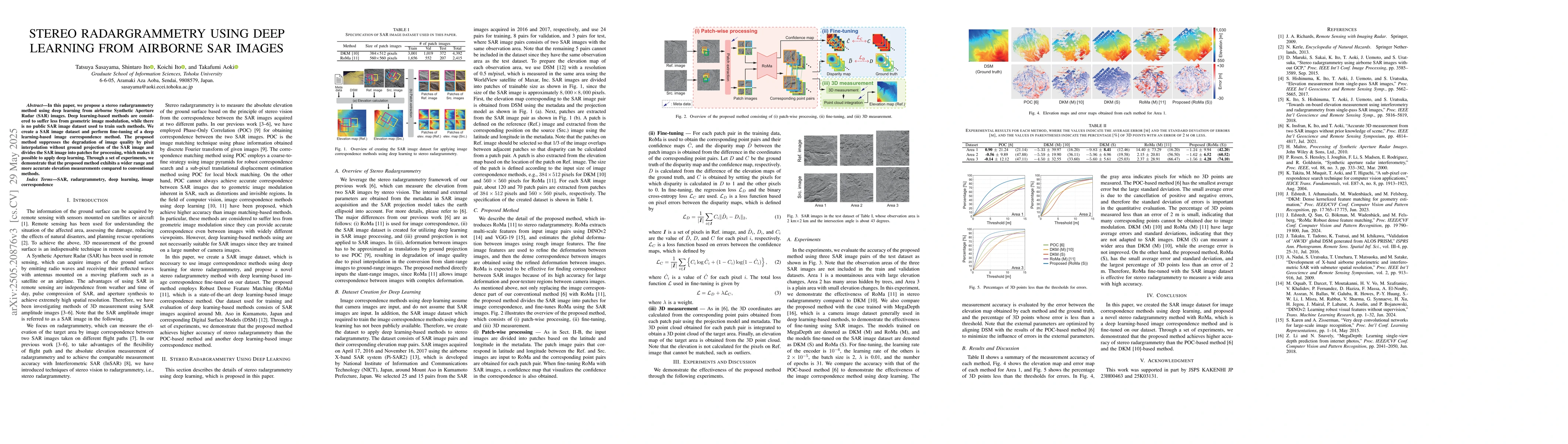 The main technical contribution is the creation of a SAR image dataset and the development of a fine-tuned deep learning-based image correspondence method for stereo radargrammetry, which improves elevation measurement accuracy.