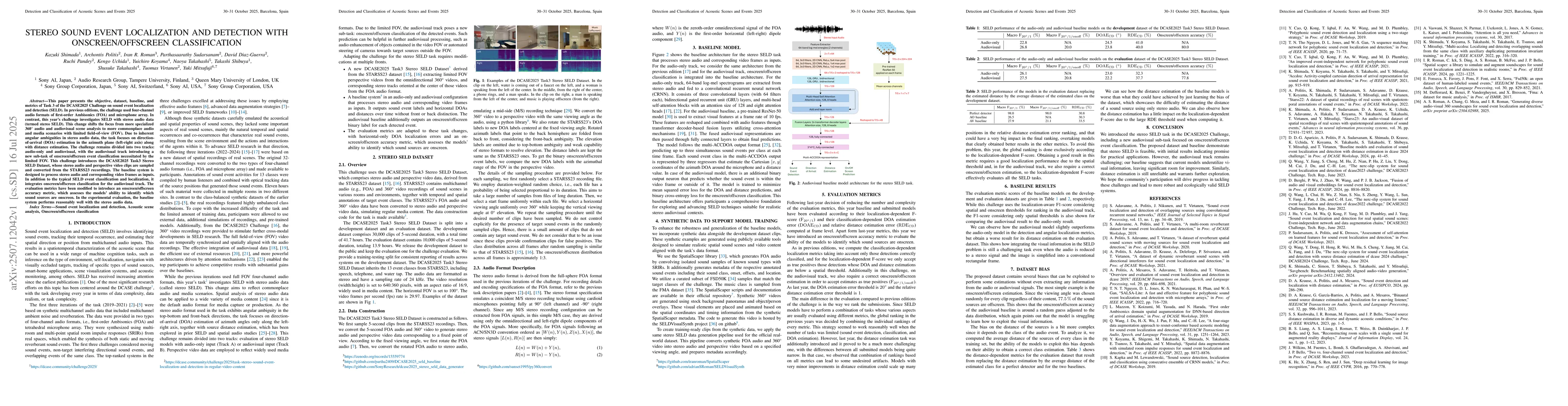 This paper presents the objective, dataset, baseline, and metrics of Task 3 of the DCASE2025 Challenge on sound event localization and detection (SELD). In previous editions, the challenge used four-channel audio formats of first-order Ambisonics (FOA) and microphone array. In contrast, this year's challenge investigates SELD with stereo audio data (termed stereo SELD). This change shifts the focus from more specialized 360{\deg} audio and audiovisual scene analysis to more commonplace audio and media scenarios with limited field-of-view (FOV). Due to inherent angular ambiguities in stereo audio data, the task focuses on direction-of-arrival (DOA) estimation in the azimuth plane (left-right axis) along with distance estimation. The challenge remains divided into two tracks: audio-only and audiovisual, with the audiovisual track introducing a new sub-task of onscreen/offscreen event classification necessitated by the limited FOV. This challenge introduces the DCASE2025 Task3 Stereo SELD Dataset, whose stereo audio and perspective video clips are sampled and converted from the STARSS23 recordings. The baseline system is designed to process stereo audio and corresponding video frames as inputs. In addition to the typical SELD event classification and localization, it integrates onscreen/offscreen classification for the audiovisual track. The evaluation metrics have been modified to introduce an onscreen/offscreen accuracy metric, which assesses the models' ability to identify which sound sources are onscreen. In the experimental evaluation, the baseline system performs reasonably well with the stereo audio data.