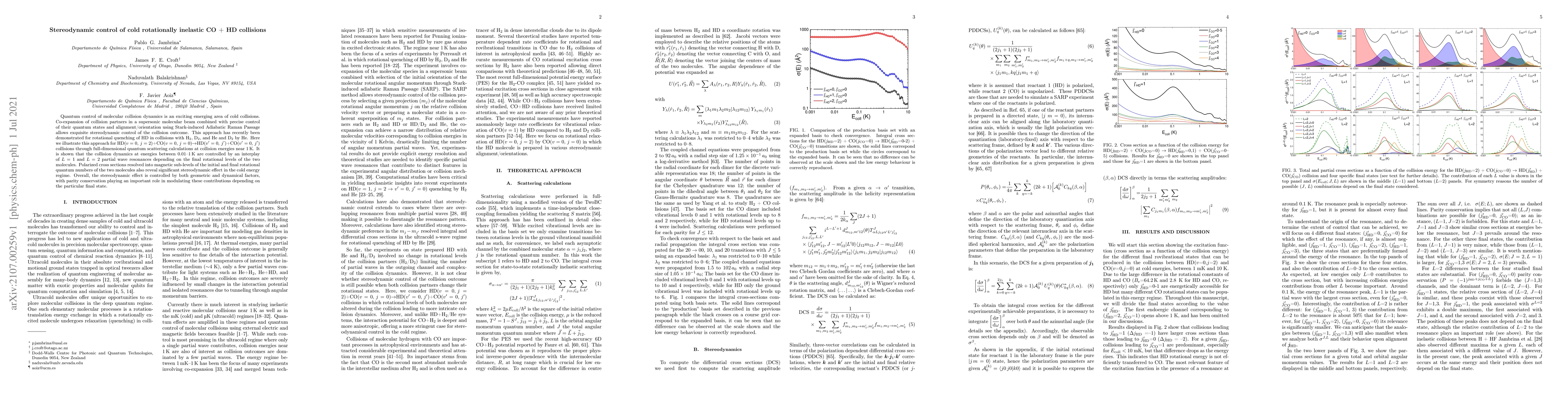 This paper demonstrates quantum control over cold CO + HD collisions using Stark-induced Adiabatic Raman Passage, revealing stereodynamic effects through polarized cross-sections and showing that dynamics are influenced by L=1 and L=2 partial wave resonances, with parity conservation modulating the outcomes.