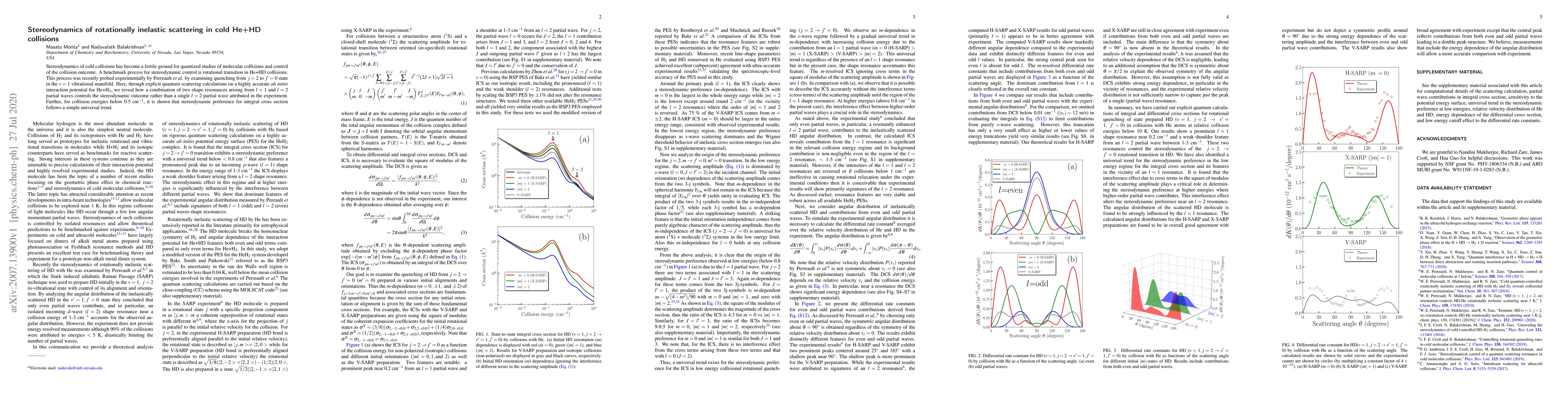 This research investigates the stereodynamics of rotationally inelastic scattering in cold He+HD collisions, revealing that two shape resonances from $l=1$ and $l=2$ partial waves control the outcome, contrary to previous experimental attribution to a single $l=2$ wave. It also demonstrates a universal trend in stereodynamic preference for integral cross sections at low collision energies.