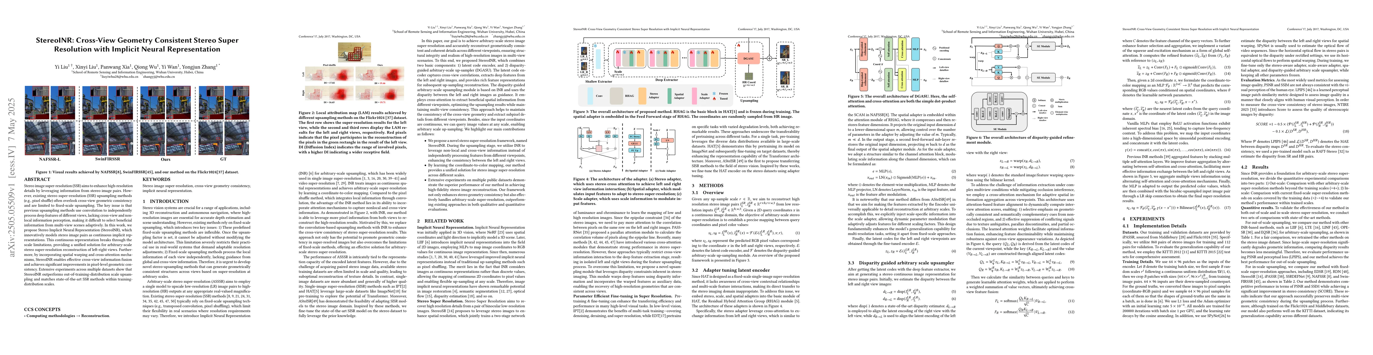 StereoINR improves stereo image super-resolution by modeling pairs as continuous implicit representations, achieving arbitrary-scale reconstruction and significant improvements in geometric consistency.