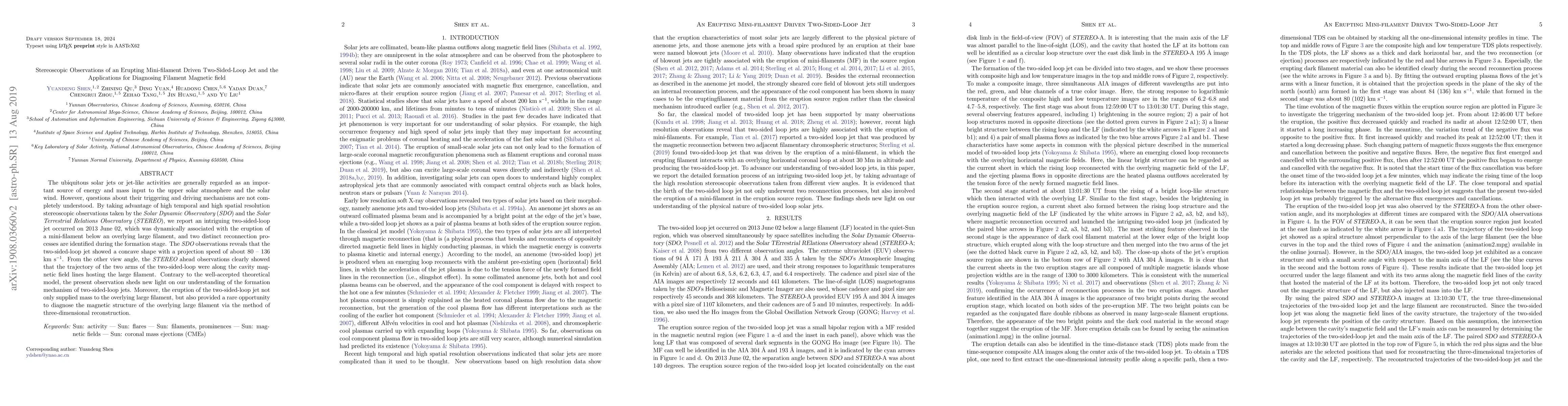 This paper reports on stereoscopic observations of a two-sided-loop jet associated with a mini-filament eruption, revealing distinct reconnection processes and challenging existing theoretical models. The study also provides a method for diagnosing the magnetic field of the overlying filament through three-dimensional reconstruction.