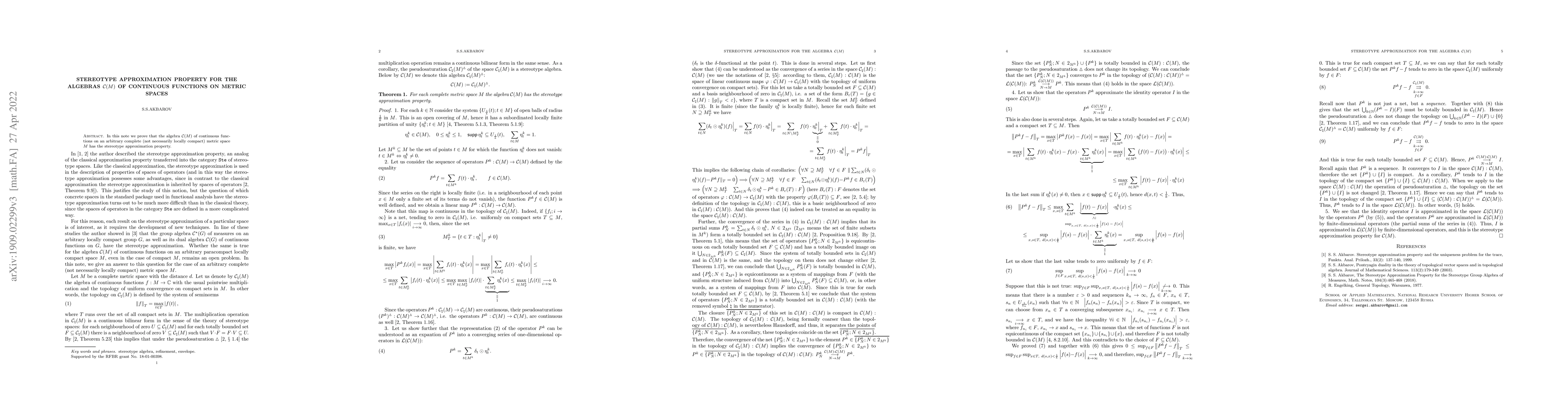 The paper proves that the algebra $C(M)$ of continuous functions on any complete metric space $M$ possesses the stereotype approximation property, extending the notion introduced by the author in previous works. This result addresses the complexity of studying this property in the category of stereotype spaces.
