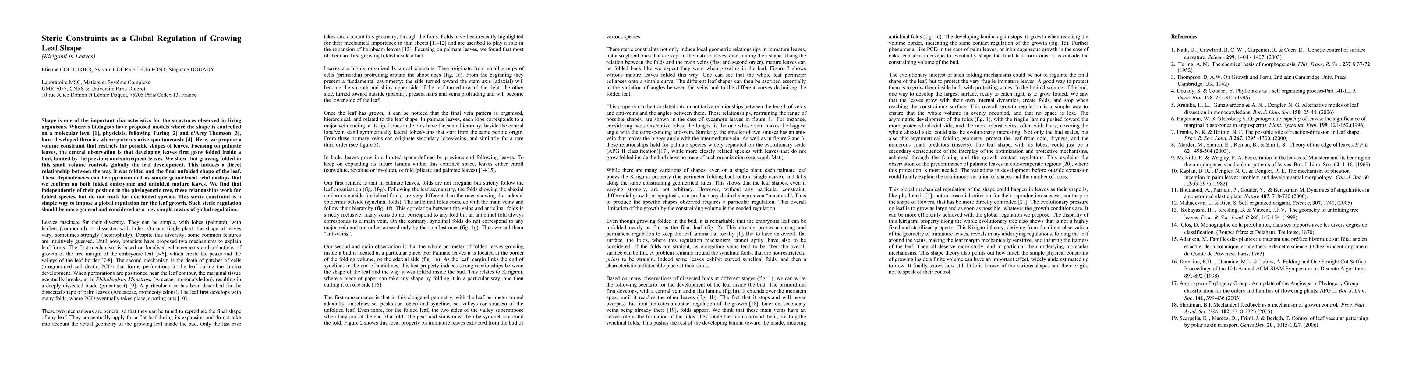 A new theory proposes that the shape of leaves is controlled by a simple steric constraint, where folding in a small volume limits growth and determines the final unfolded shape.