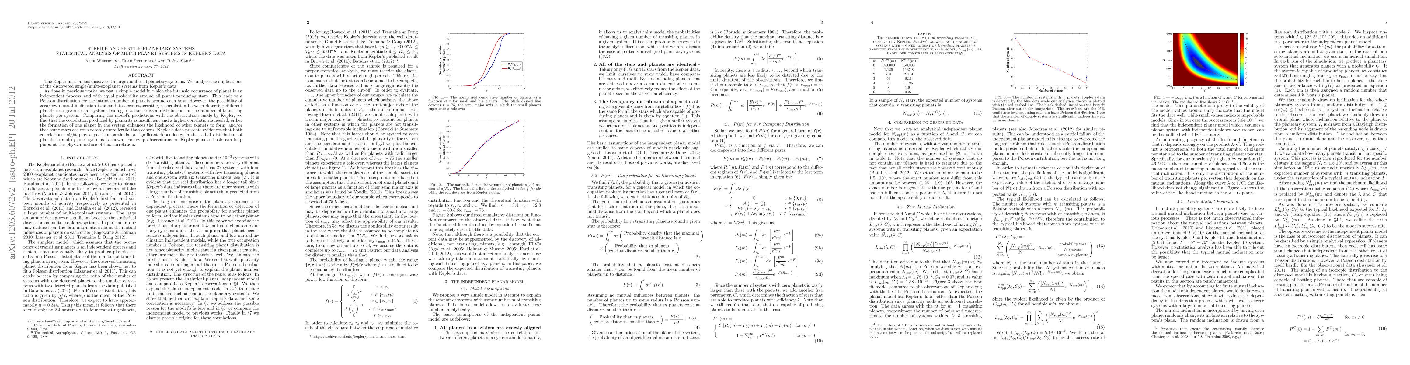 The Kepler mission has discovered a large number of planetary systems. We analyze the implications of the discovered single/multi-exoplanet systems from Kepler's data. As done in previous works, we test a simple model in which the intrinsic occurrence of planet is an independent process, and with equal probability around all planet producing stars. This leads to a Poisson distribution for the intrinsic number of planets around each host. However, the possibility of zero/low mutual inclination is taken into account, creating a correlation between detecting different planets in a given stellar system, leading to a non Poisson distribution for the number of transiting planets per system. Comparing the model's predictions with the observations made by Kepler, we find that the correlation produced by planarity is insufficient and a higher correlation is needed; either the formation of one planet in the system enhances the likelihood of other planets to form, and/or that some stars are considerably more fertile than others. Kepler's data presents evidences that both correlations might play a part, in particular a significant dependency in the radial distribution of planets in multi-planet systems is shown. Followup observations on Kepler planet's hosts can help pinpoint the physical nature of this correlation.