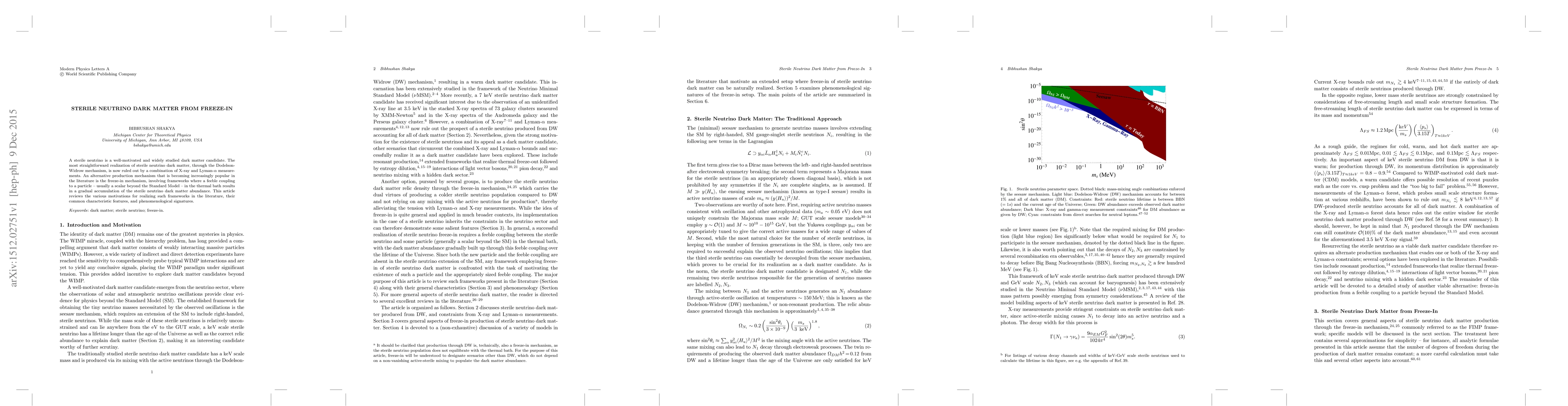 This paper reviews the freeze-in mechanism for sterile neutrino dark matter, exploring its motivations and characteristics as an alternative to the Dodelson-Widrow mechanism, and discusses potential phenomenological signatures.