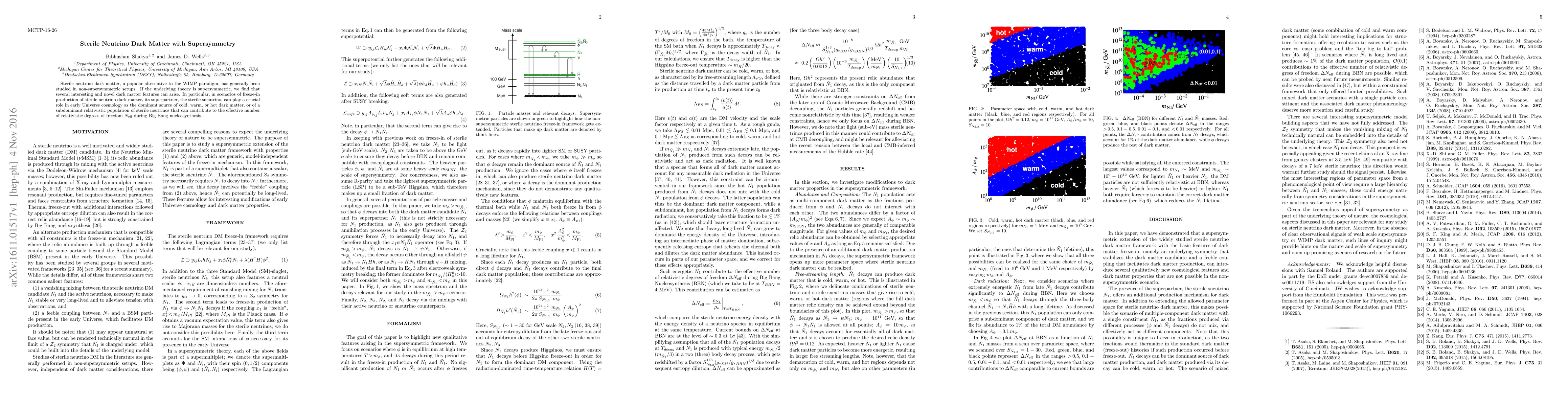 This paper explores sterile neutrino dark matter within a supersymmetric framework, highlighting that the sterile sneutrino's role in the early Universe can lead to various dark matter states, influencing the effective number of relativistic degrees of freedom during Big Bang nucleosynthesis.