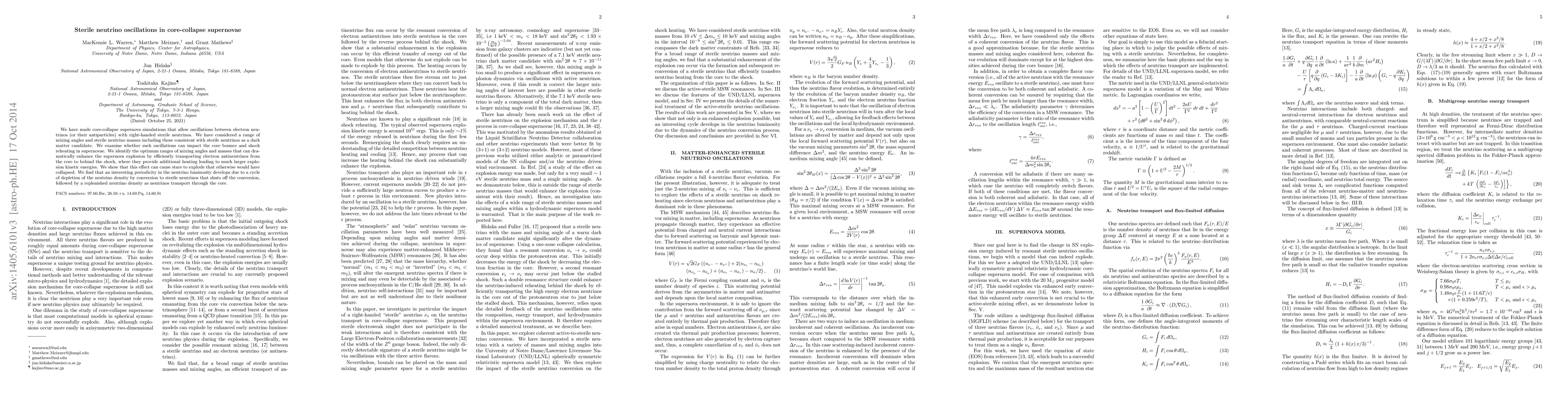 The paper presents a novel approach to supernova simulations incorporating sterile neutrino oscillations, providing a mechanism for enhancing explosion energies through efficient neutrino transport.