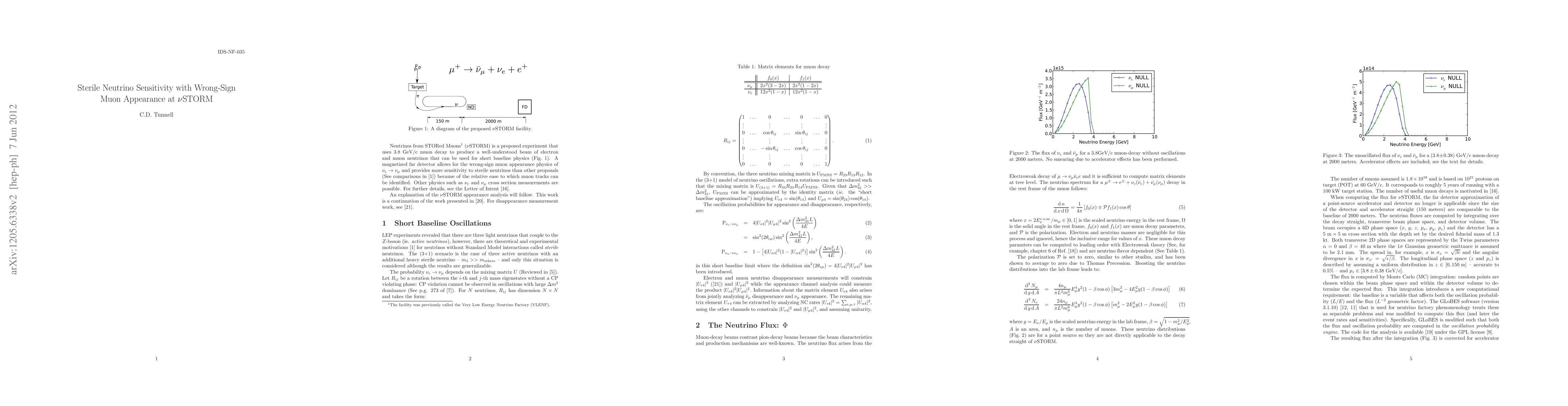 Neutrinos from STORed Muons (nuSTORM; formerly VLENF) is a proposed experiment to use 3.8 GeV/c muon decay to produce a well-understood beam of electron and muon neutrinos that can be used for short baseline physics. A magnetized far detector allows for the wrong-sign muon appearance physics of electron-neutrino to muon-neutrino. This channel is the CPT of the LSND anomaly and provides 10 sigma sensitivity to the anomaly. This note contains a detailed explanation of the nSTORM appearance analysis that was included in the Letter of Intent.