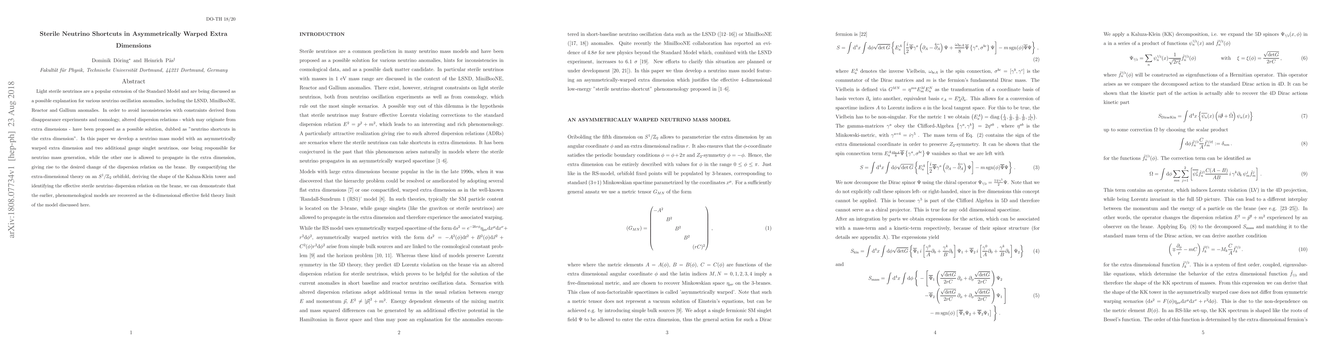 The paper presents a detailed derivation of the Kaluza-Klein tower in an asymmetrically warped extra dimension, identifying the effective Lorentz-violation on the brane and the resulting altered dispersion relation for fermionic singlets and particles mixing with them.