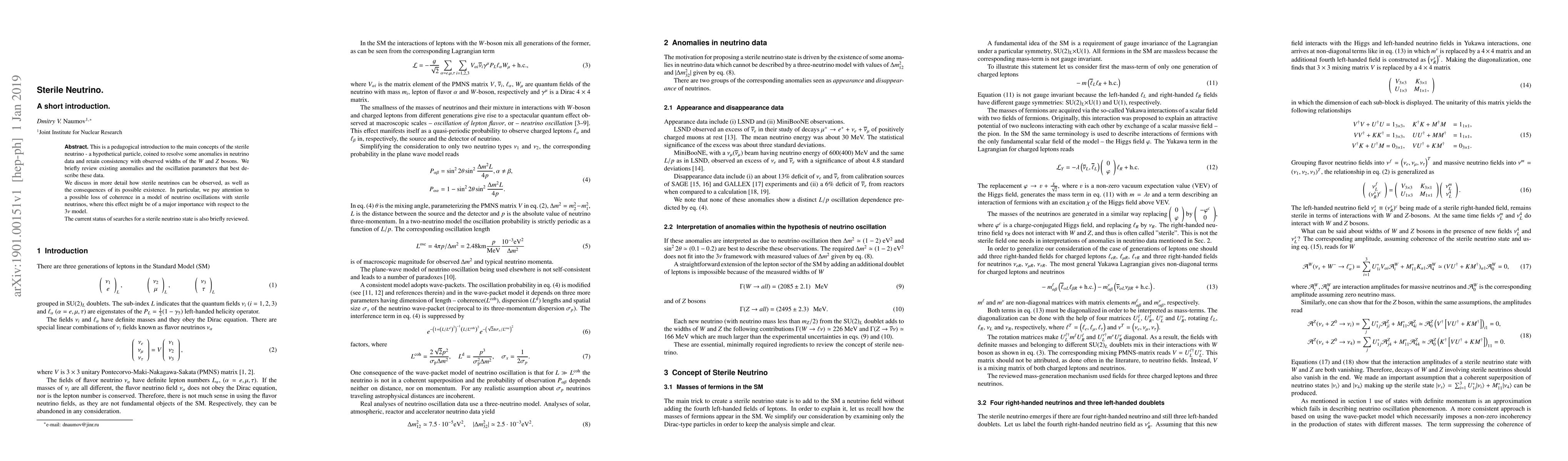 This paper provides a pedagogical introduction to sterile neutrinos, which are hypothesized to resolve anomalies in neutrino data while maintaining consistency with observed widths of the W and Z bosons. It reviews existing anomalies and discusses potential observational methods and consequences, including a possible loss of coherence in neutrino oscillation models.