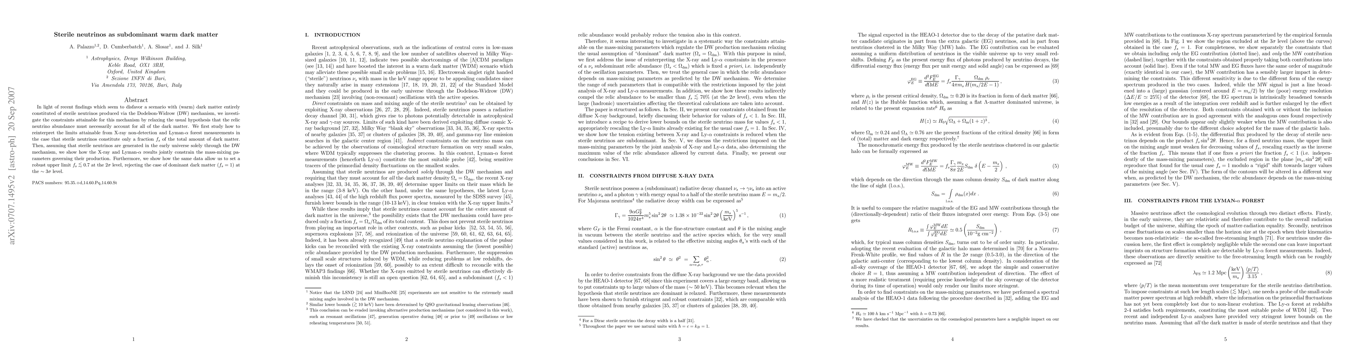 This paper explores the constraints on sterile neutrinos as a subdominant component of warm dark matter, finding that they can only constitute up to 70% of the total dark matter. It demonstrates that X-ray and Lyman-alpha forest data limit the mass-mixing parameters for their production, ruling out their dominance at the 3 sigma level.