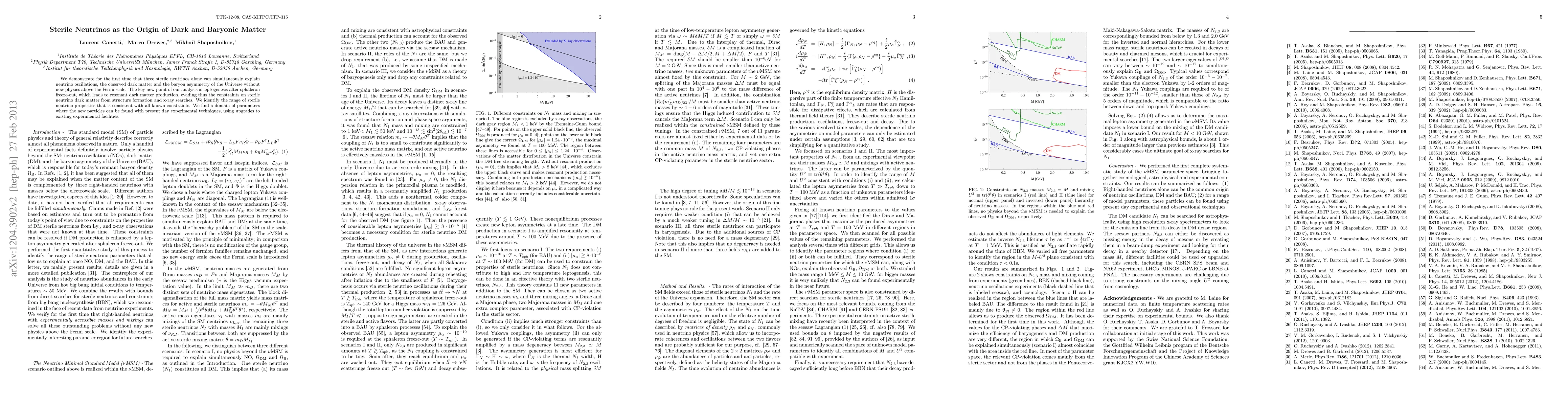 This paper proposes that three sterile neutrinos can account for neutrino oscillations, dark matter, and the observed baryon asymmetry without requiring physics beyond the Standard Model. It introduces a novel leptogenesis mechanism post sphaleron freeze-out, allowing for resonant dark matter production and suggesting a parameter range consistent with experimental constraints, with potential for detection via upgrades to current experimental setups.