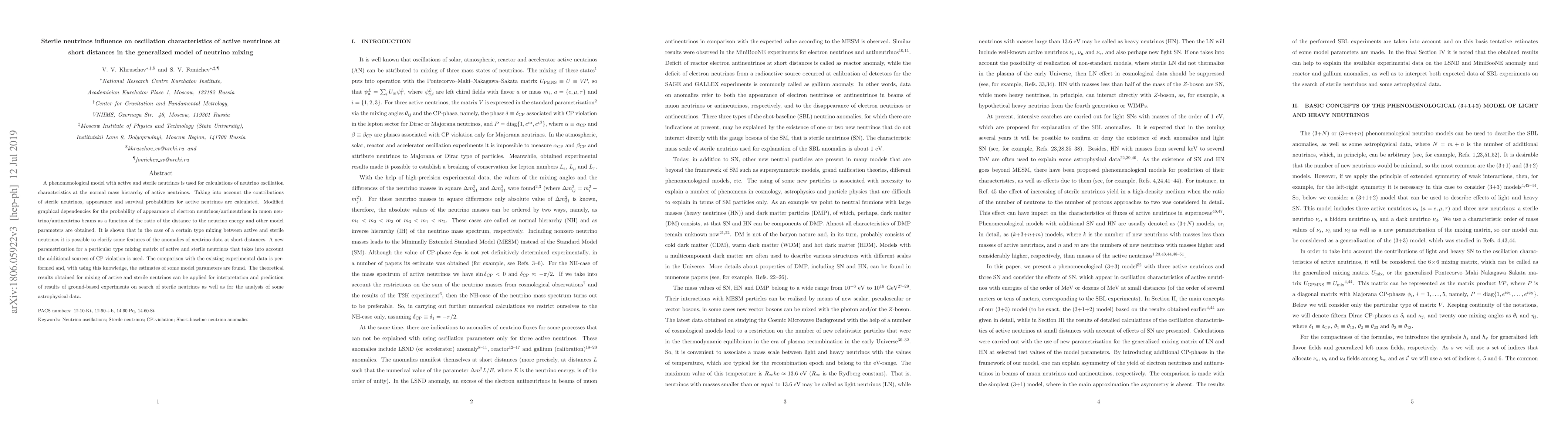 This paper explores the influence of sterile neutrinos on the oscillation characteristics of active neutrinos in a generalized mixing model, revealing how their interaction can clarify short-distance neutrino data anomalies. It introduces a new parametrization for the mixing matrix, incorporating CP violation, and compares theoretical results with experimental data to estimate model parameters.