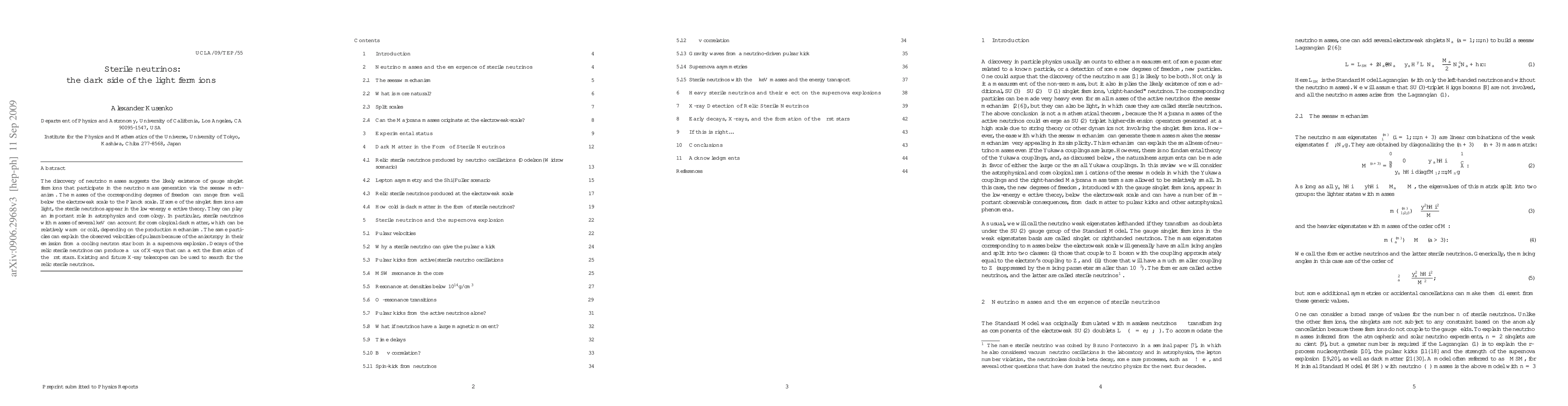 The discovery of neutrino masses suggests the likely existence of gauge singlet fermions that participate in the neutrino mass generation via the seesaw mechanism. The masses of the corresponding degrees of freedom can range from well below the electroweak scale to the Planck scale. If some of the singlet fermions are light, the sterile neutrinos appear in the low-energy effective theory. They can play an important role in astrophysics and cosmology. In particular, sterile neutrinos with masses of several keV can account for cosmological dark matter, which can be relatively warm or cold, depending on the production mechanism. The same particles can explain the observed velocities of pulsars because of the anisotropy in their emission from a cooling neutron star born in a supernova explosion. Decays of the relic sterile neutrinos can produce a flux of X-rays that can affect the formation of the first stars. Existing and future X-ray telescopes can be used to search for the relic sterile neutrinos.
