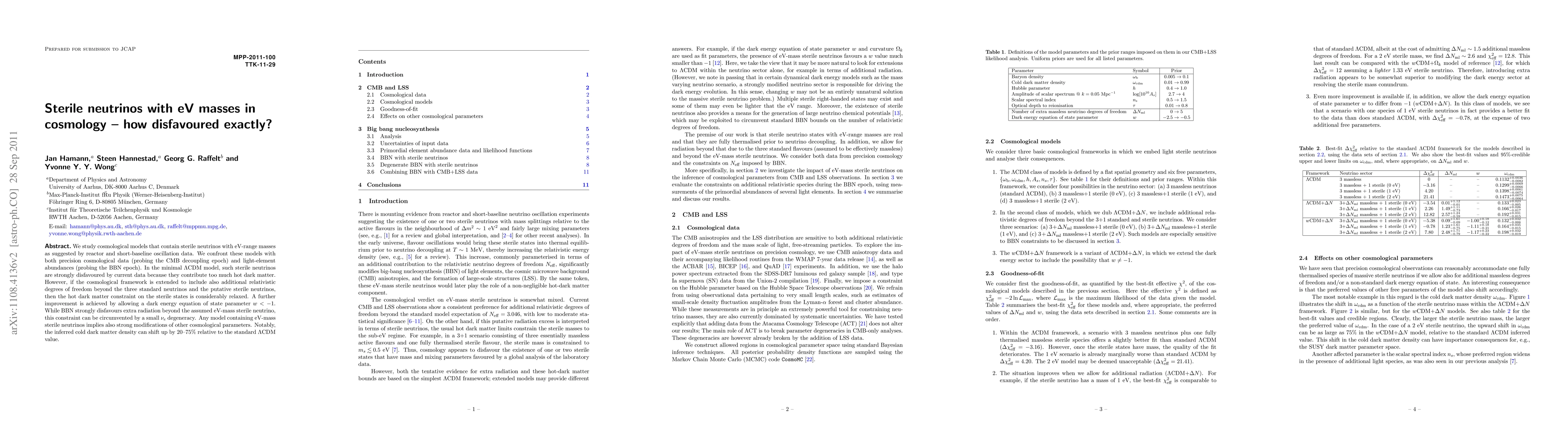 This paper examines the viability of sterile neutrinos with eV masses in cosmological models, finding they are strongly disfavored in the minimal LambdaCDM model due to excessive hot dark matter. However, extending the cosmological framework to include additional relativistic degrees of freedom and a dark energy equation of state with w<-1 can relax these constraints.