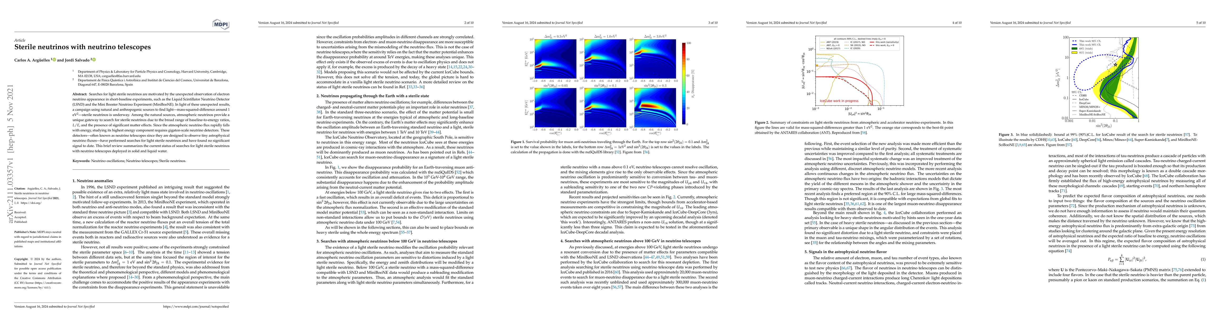 This paper reviews ongoing searches for light sterile neutrinos using neutrino telescopes, motivated by short-baseline experiment observations of electron neutrino appearance. Despite the large-scale detectors' efforts, no significant signal has been found to date.