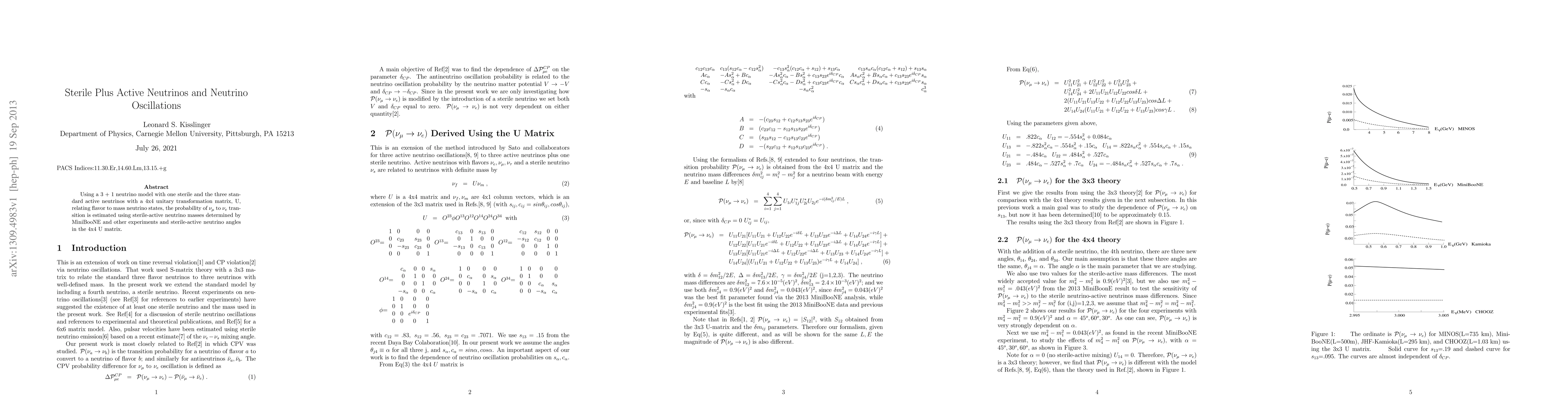 This paper explores a 3+1 neutrino model incorporating one sterile and three active neutrinos, estimating the probability of $\nu_\mu$ to $\nu_e$ transitions using mass values and mixing angles derived from MiniBooNE and other experiments. The study employs a 4x4 unitary transformation matrix to relate flavor to mass states.