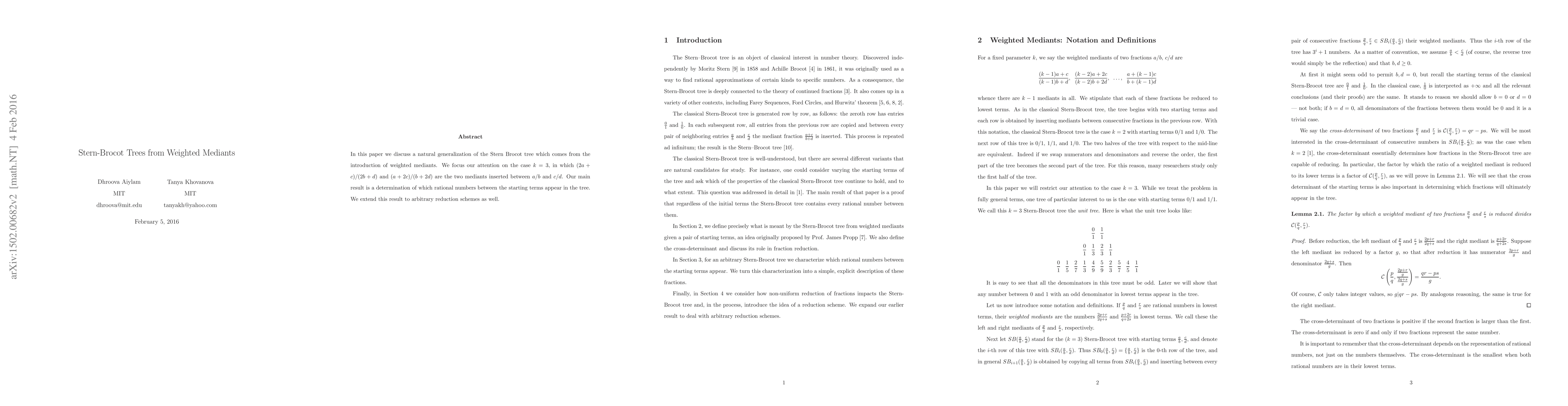 This paper generalizes the Stern-Brocot tree using weighted mediants, specifically focusing on $k=3$. The main result identifies which rational numbers appear between initial terms in the tree, extending the findings to various reduction schemes.