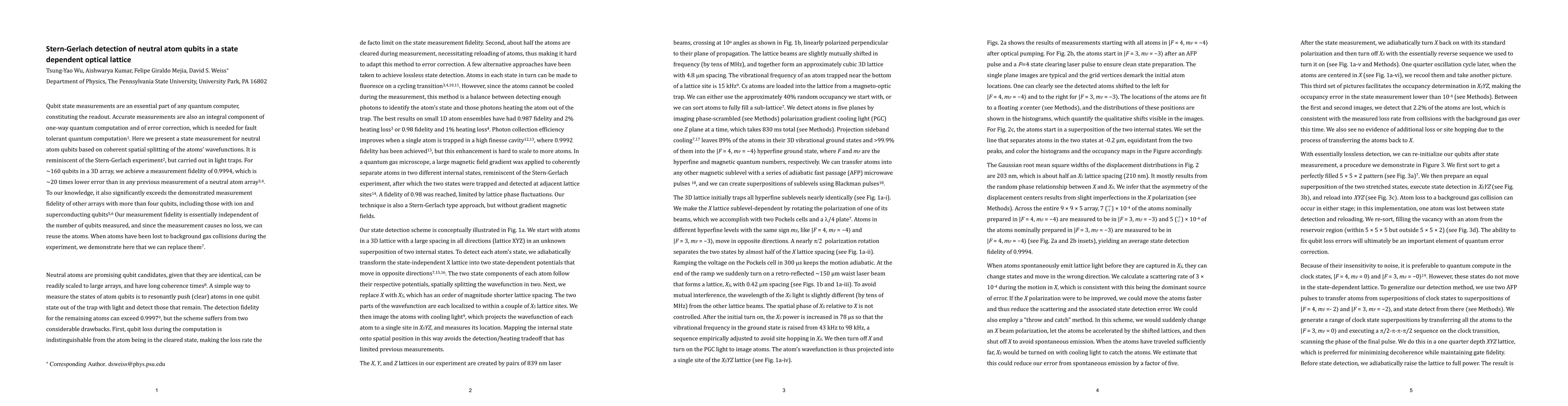 Scientists successfully measured the state of 160 Cesium atoms in a 3D optical lattice using a technique inspired by the Stern-Gerlach experiment, achieving high measurement fidelity and demonstrating re-initialization of the qubit array after measurement.