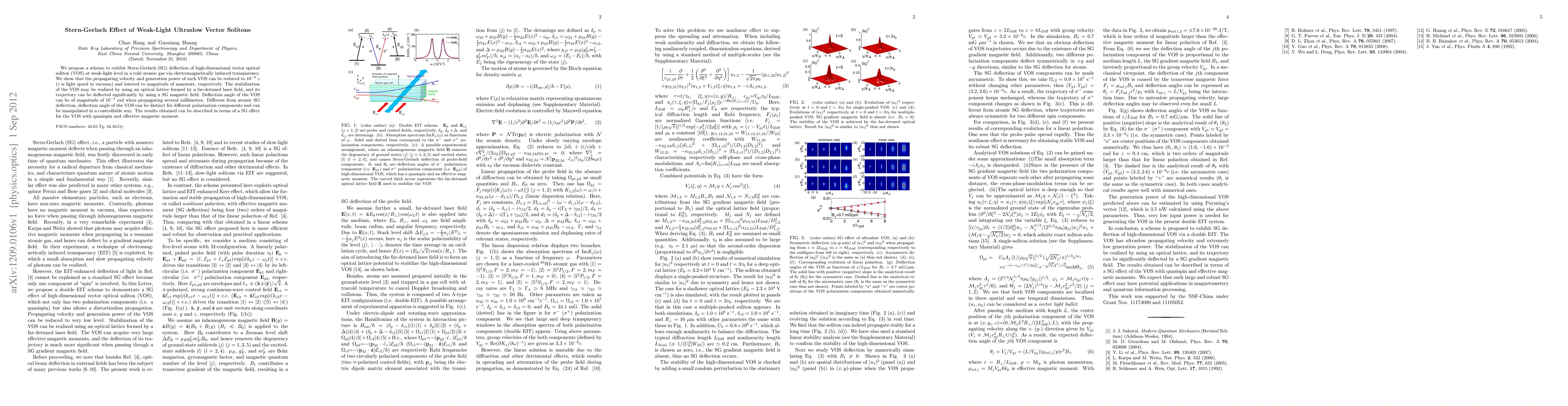 This paper proposes a method to demonstrate Stern-Gerlach deflection of ultraslow vector optical solitons in a cold atomic gas using electromagnetically induced transparency, achieving velocities as low as $10^{-6}c$ and power levels in the nanowatt range. The deflection angle can be manipulated and varies for different polarization components.
