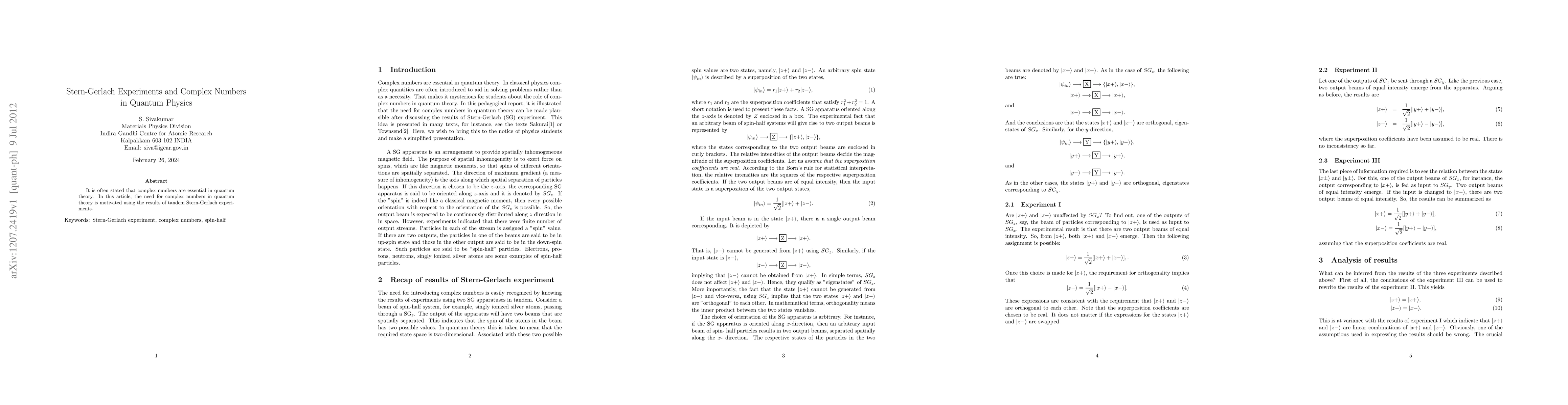 This paper argues for the necessity of complex numbers in quantum theory by demonstrating their role through the outcomes of tandem Stern-Gerlach experiments, which provide empirical support for the theoretical framework.